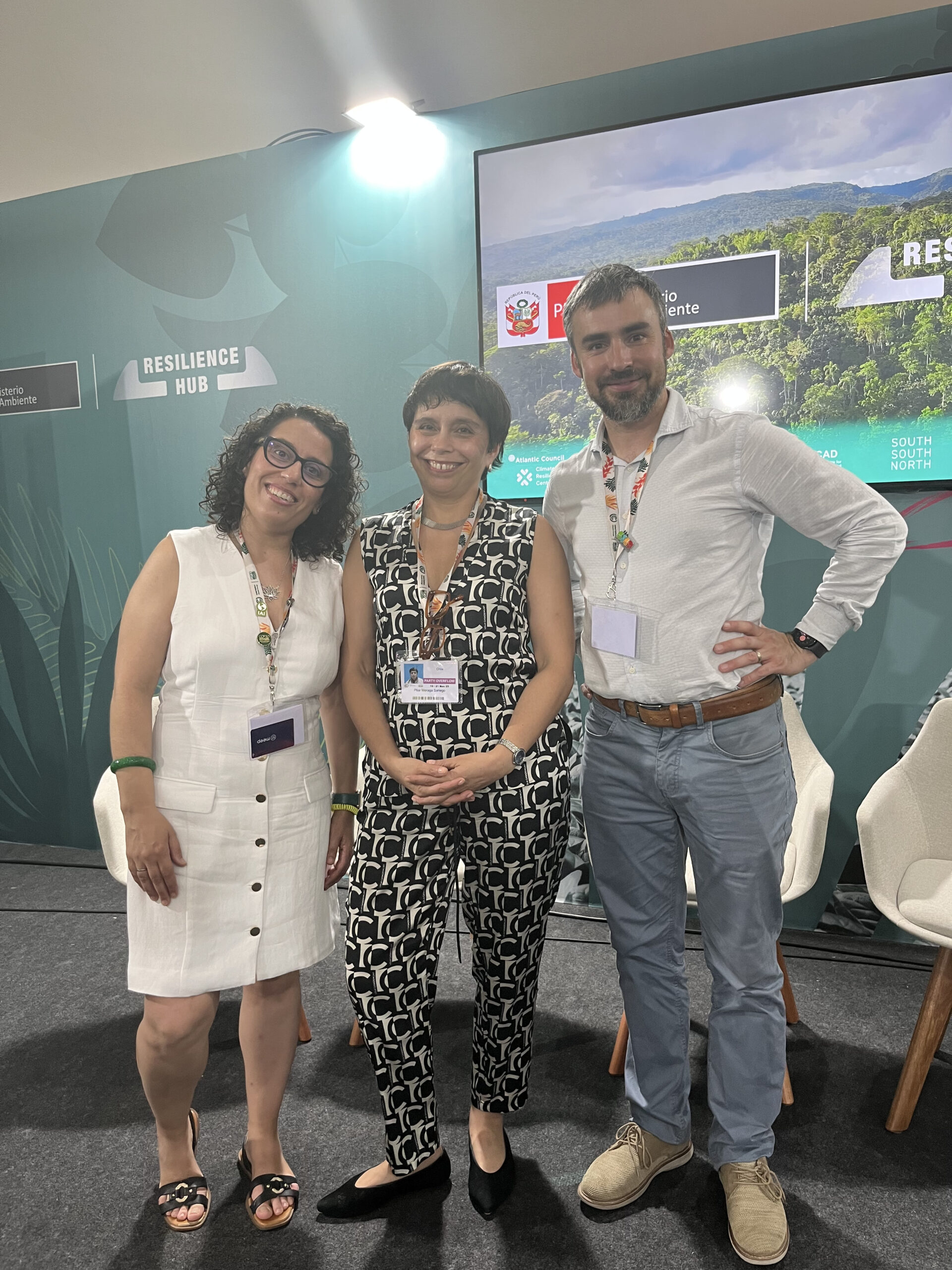 La delegación del CR2 también asistió al lanzamiento oficial del informe de progreso de Race to Resilience, que presentó los resultados acumulativos sobre su implementación, mostrando la resiliencia en la práctica y más allá de las promesas y los planes. El informe destaca a agricultores que acceden a préstamos climáticos, comunidades que reciben alertas tempranas, hogares fortalecidos contra las tormentas y arrecifes restaurados para proteger las costas. Este espacio fue moderado por los investigadores CR2, Laura Ramajo y Marco Billi.