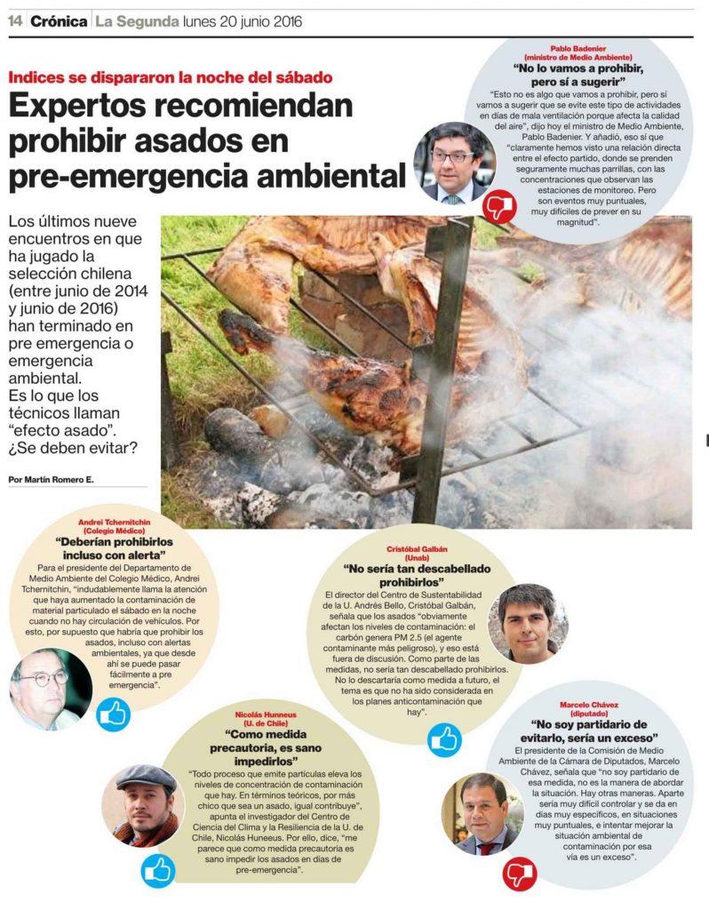 Los últimos nueve encuentros en que ha jugado la selección chilena (entre junio de 2014 y junio de 2016) han terminado en pre emergencia o emergencia ambiental. Es lo que los técnicos llaman «efecto asado» ¿Se debe evitar?