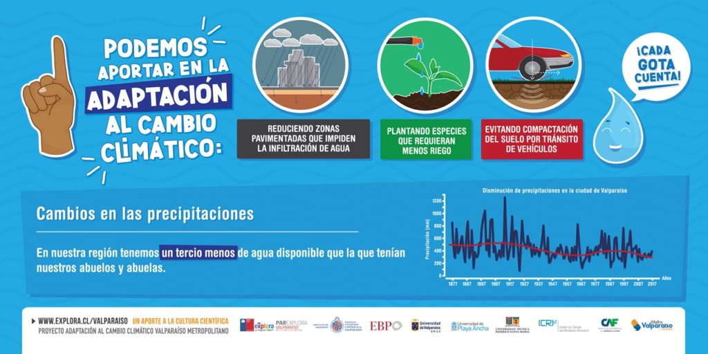 En un trabajo en conjunto con distintas instituciones y centros de investigación del país, se desarrollaron ocho gigantografías que entregan información sobre los procesos que se están viendo afectados por el cambio climático y los aportes que podemos hacer para adaptarnos a éste. Las imágenes estarán disponibles en todas las estaciones del Metro de Valparaíso.