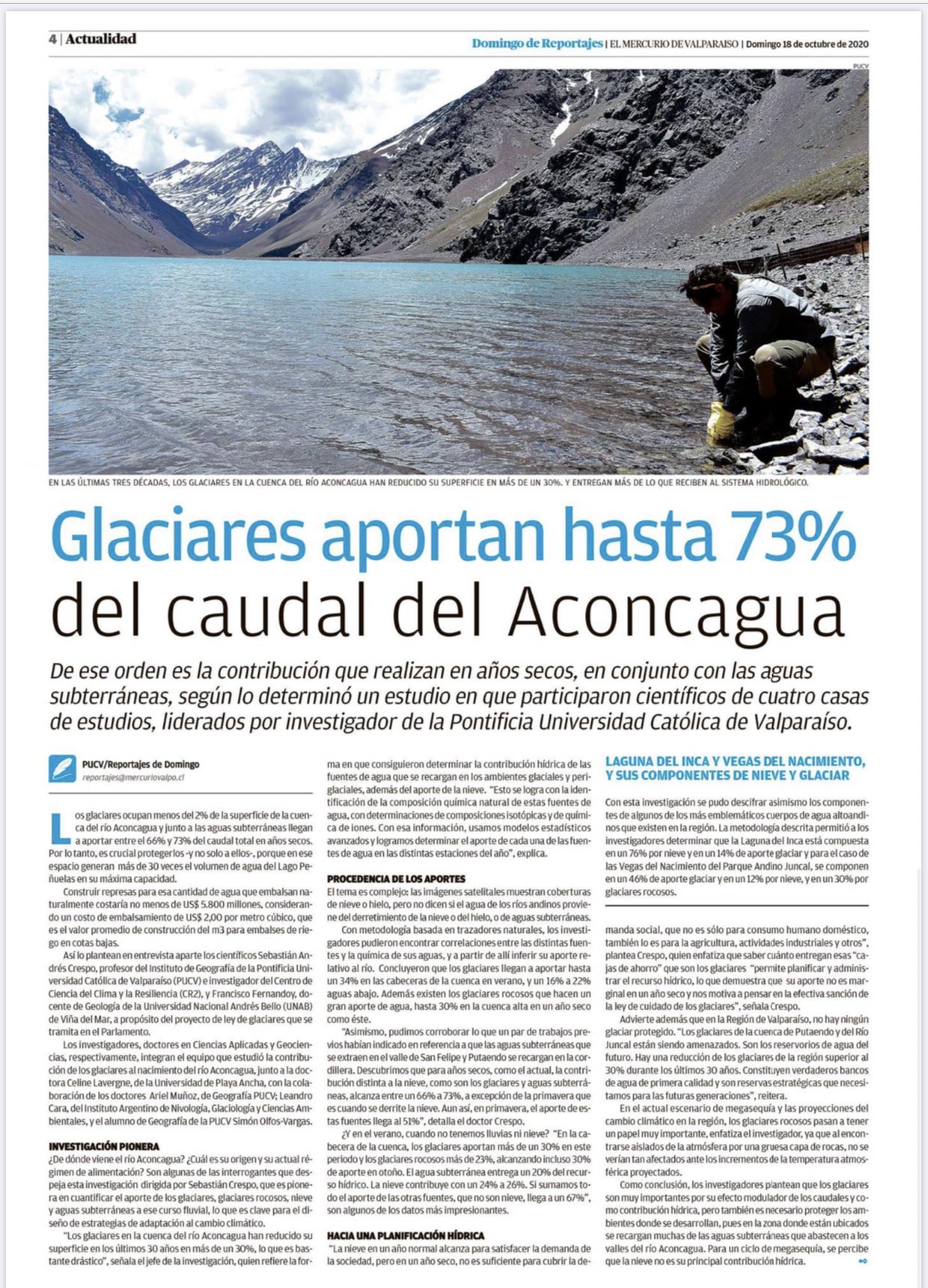De ese orden es la contribución que realizan en años secos, en conjunto con las aguas subterráneas, según lo determinó un estudio en que participaron científicos de cuatro casas de estudios, liderados por investigador de la Pontificia Universidad Católica de Valparaíso.