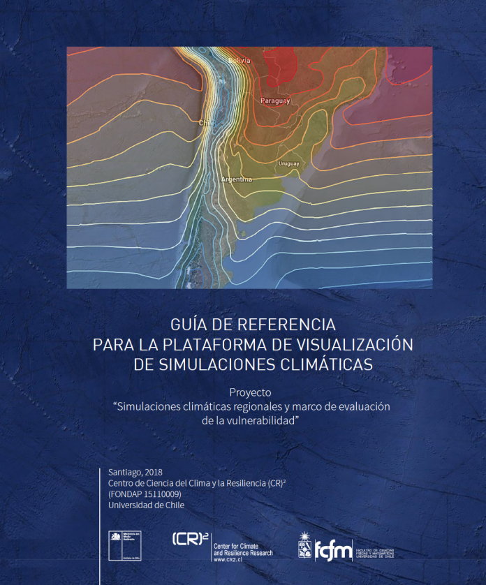 Este informe de síntesis sirve como guía de referencia para el uso de la plataforma de visualización de simulaciones (http://simulaciones.cr2.cl) La plataforma de visualización incluye resultados de simulaciones climáticas globales y regionales, realizadas por grupos en Chile y el extranjero, así como datos observacionales en formato grillado desarrollados por el (CR)2 y otros grupos e instituciones. La plataforma genera mapas, tablas, gráficos y series de tiempo para el dominio de Sudamérica, Chile y macrozonas de Chile predefinidas, así como para polígonos o puntos definidos en forma dinámica.