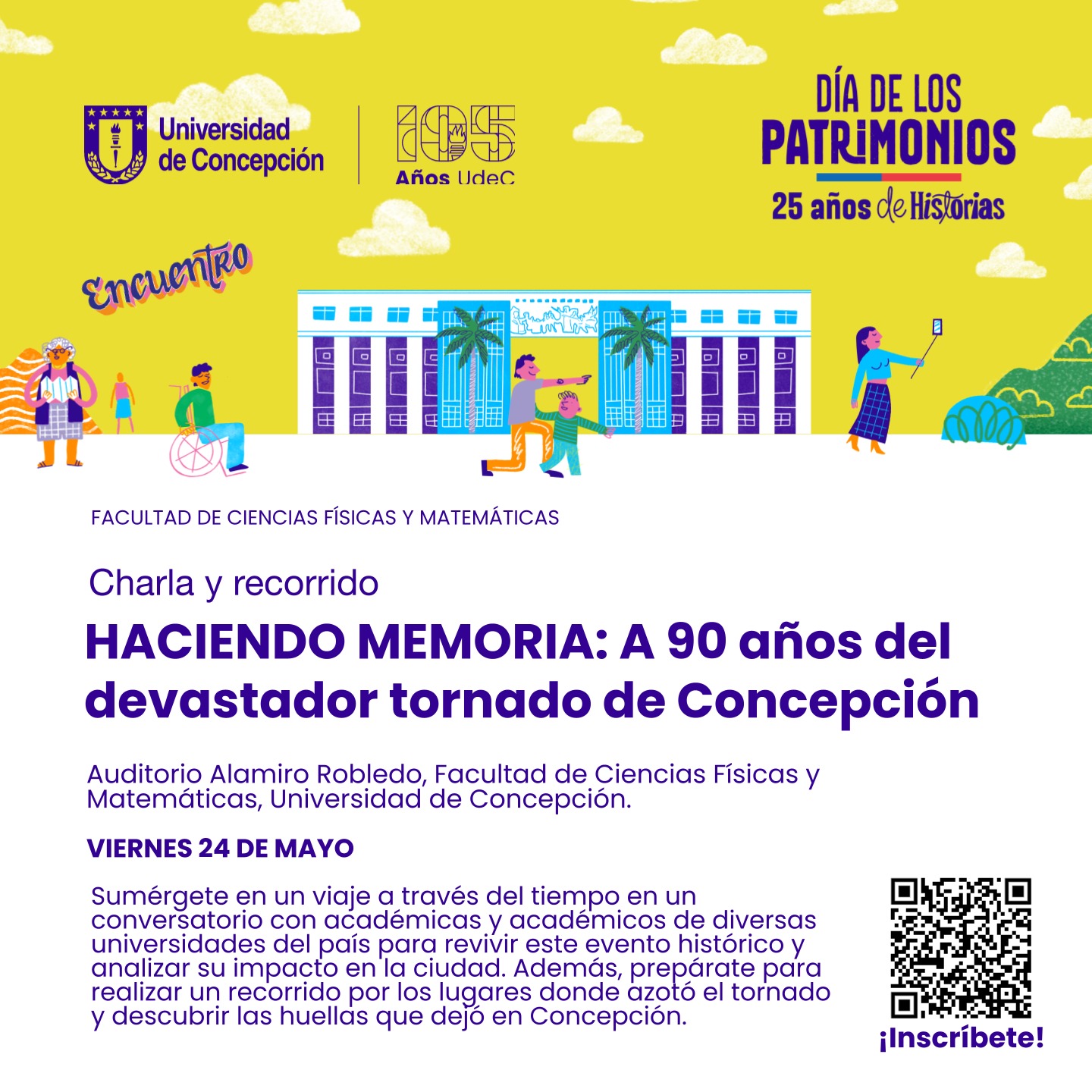 Por ello, en conmemoración de los 90 años de este evento meteorológico, es que este viernes 24 de mayo de 2024 se realizará una charla y panel de conversación acerca de los tornados en la Facultad de Ciencias Físicas y Matemáticas de la Universidad de Concepción, organizado el Centro de Ciencia del Clima y la Resiliencia y el Departamento de Geofísica de la UdeC.