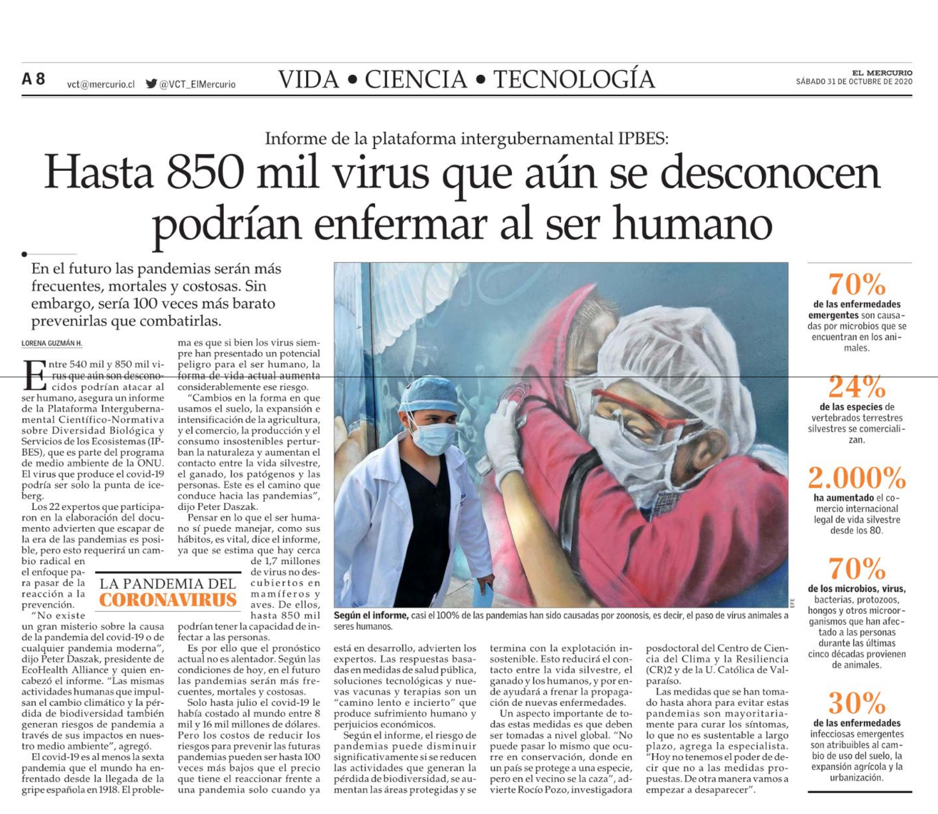 Entre 540 mil 850 mil virus que aún son desconocidos podrían atacar al ser humano, asegura un informe de la Plataforma Intergubernamental Científico-Normativa sobre Diversidad Biológica y Servicios de los Ecosistemas (IPBES), que es parte del programa de medio ambiente de la ONU. El virus que produce el covid-19 podría ser solo la punta del iceberg.