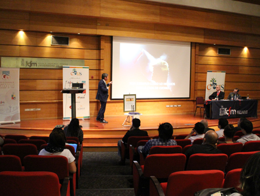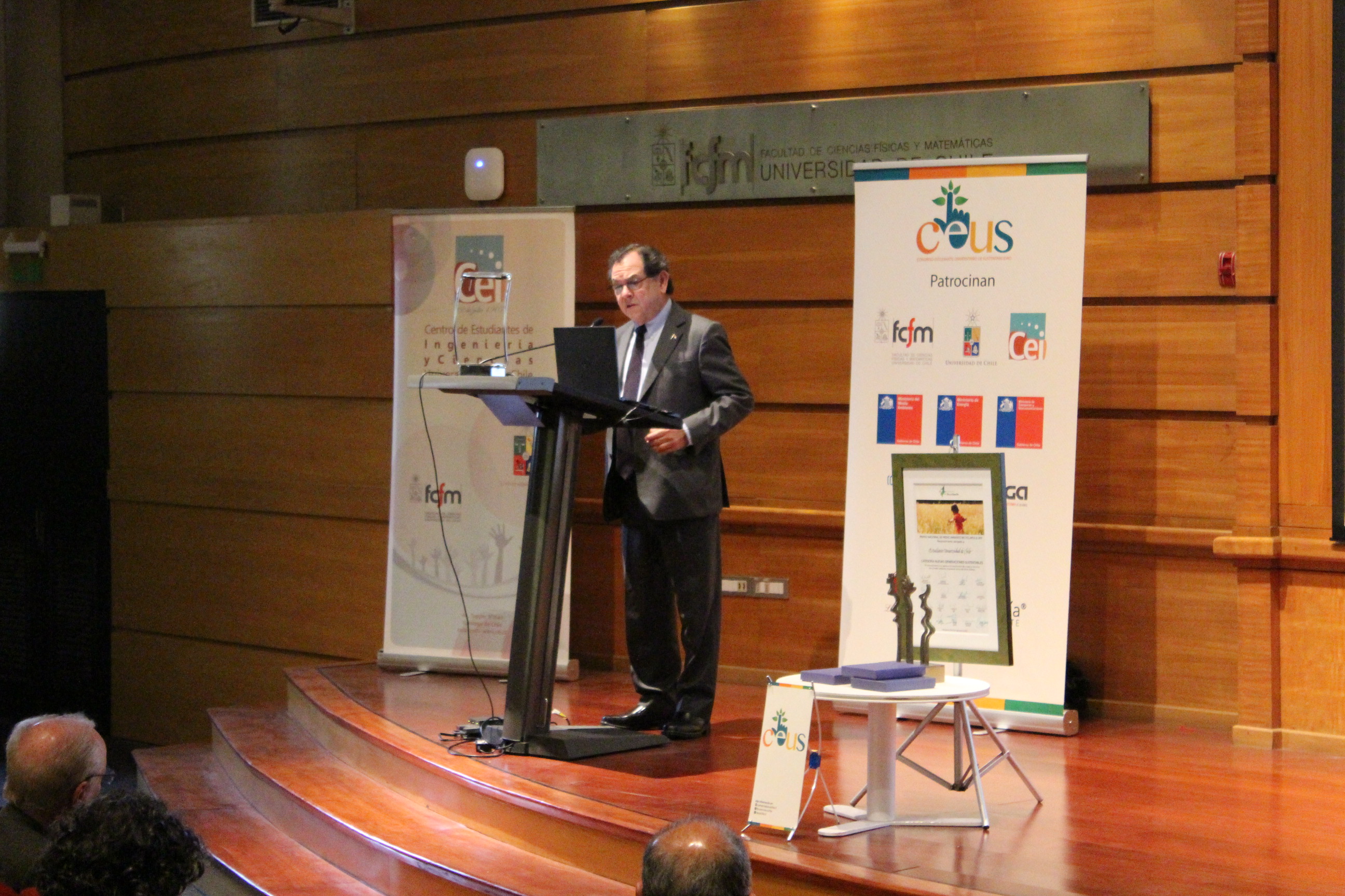 El decano de la FCFM, Patricio Aceituno, dio la bienvenida a las autoridades y participantes del encuentro, resaltando el ímpetu de los estudiantes de la Facultad por insertar estos temas en la vida cotidiana universitaria. “Introducir el concepto de sustentabilidad de arriba hacia abajo es siempre difícil, pero en nuestra Facultad fue a la inversa. Este cambio cultural fue impulsado por los estudiantes y estoy muy orgulloso de ellos”, expresó el decano. “La FCFM está impulsando este concepto en el proceso formativo de nuestros profesionales porque son ellos, junto a otros profesionales de la sociedad, quienes tendrán que mover el futuro… Este tema llegó a instalarse como concepto fundamental, no sólo en la formación sino en la vida de cada uno de nosotros”, concluyó.