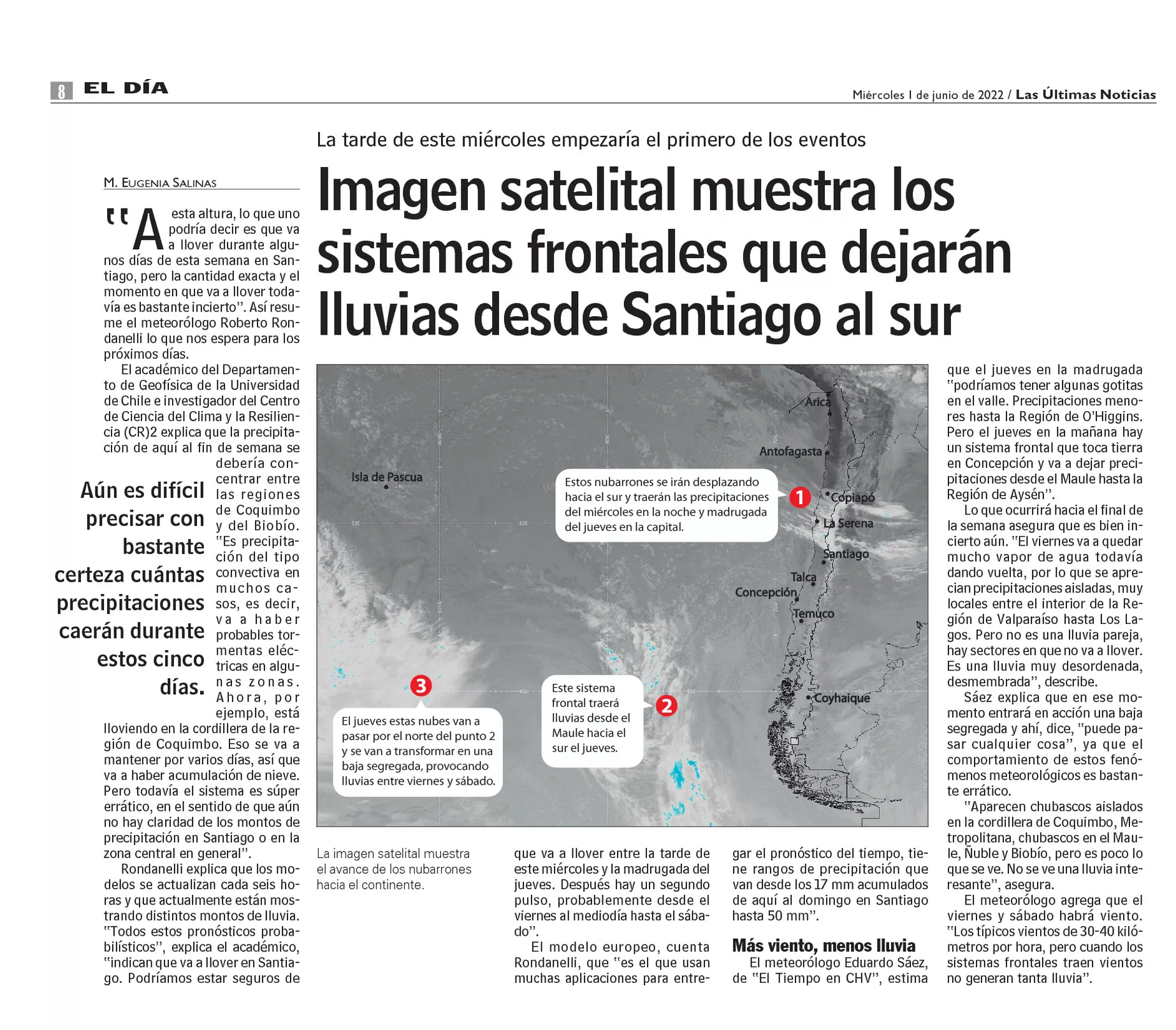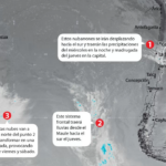 Imagen satelital muestra sistemas frontales que dejarán lluvias desde Santiago al sur (Las Últimas Noticias)