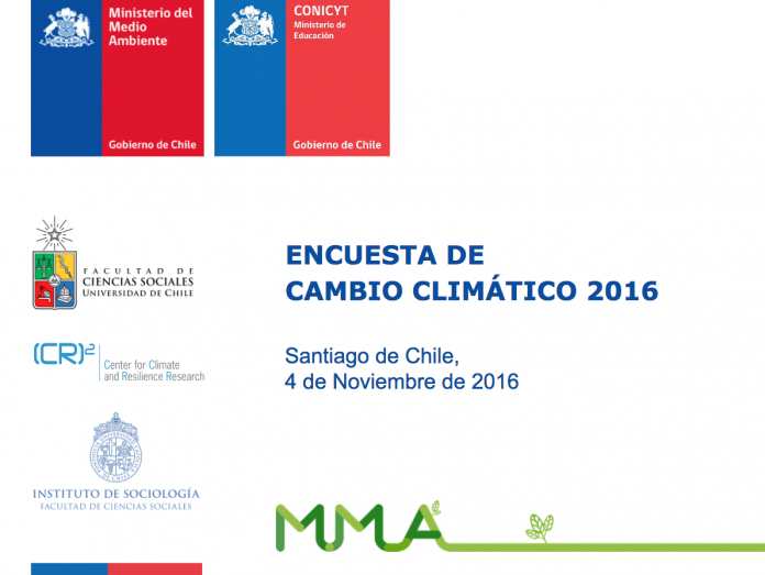 La Encuesta Nacional de Medio Ambiente y Cambio Climático 2016 fue un trabajo conjunto realizado por el Ministerio del Medio Ambiente y el Proyecto «Integrando el conocimiento psicológico y el estudio de las dinámicas sociales en el abordaje del cambio climático en Chile» (Programa PAI CONICYT Folio 82140012), conducido por el Dr. Rodolfo Sapiains, del Departamento de Psicología de la Universidad de Chile e investigador adjunto del (CR)2.