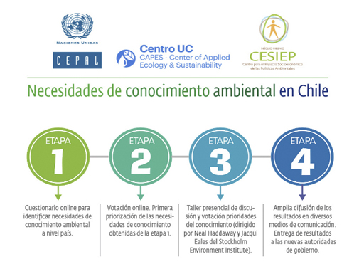 “Necesidades de Conocimiento Ambiental en Chile”, es un ejercicio inédito en Chile y Latinoamérica, que se desarrollará en nuestro país organizado por Núcleo Milenio Centro para el Impacto Socioeconómico de las Políticas Ambientales (CESIEP) junto al Centro de Ecología Aplicada de la UC (CAPES) y la Comisión Económica para América Latina y el Caribe de las Naciones Unidas (CEPAL).
