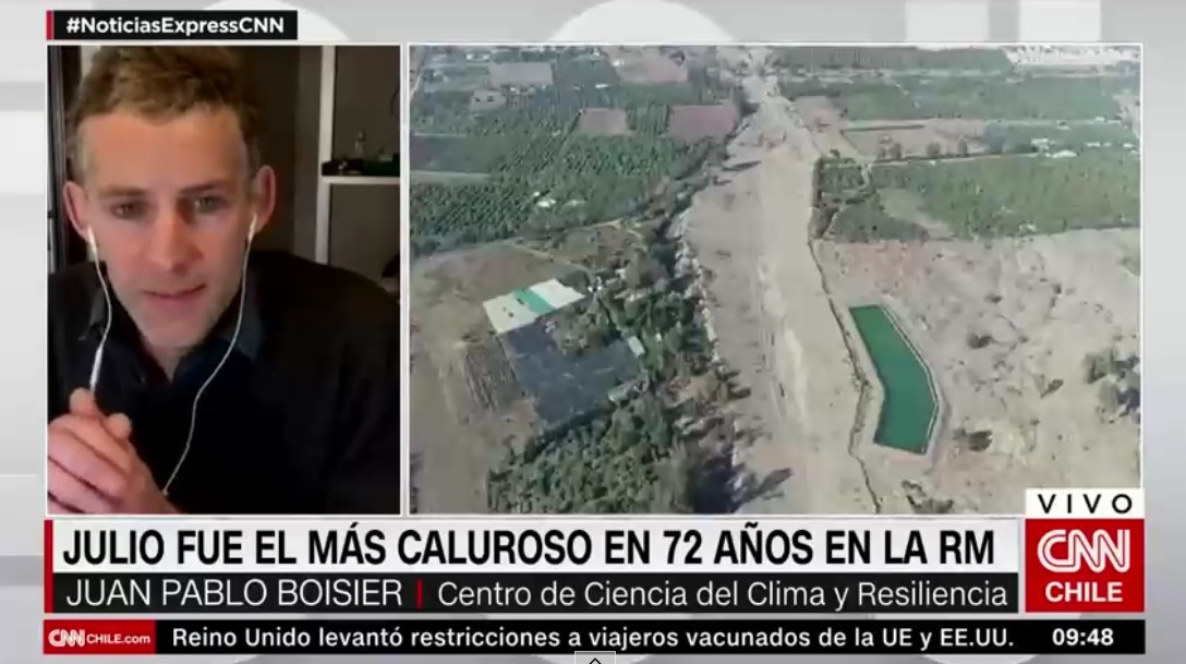 En entrevista con Noticias Express de CNN Chile, el especialista se refirió a los índices que dieron a conocer que julio fue el mes más caluroso en 72 años en la Región Metropolitana y que la temperatura máxima durante el mes promedió más de 19 grados.