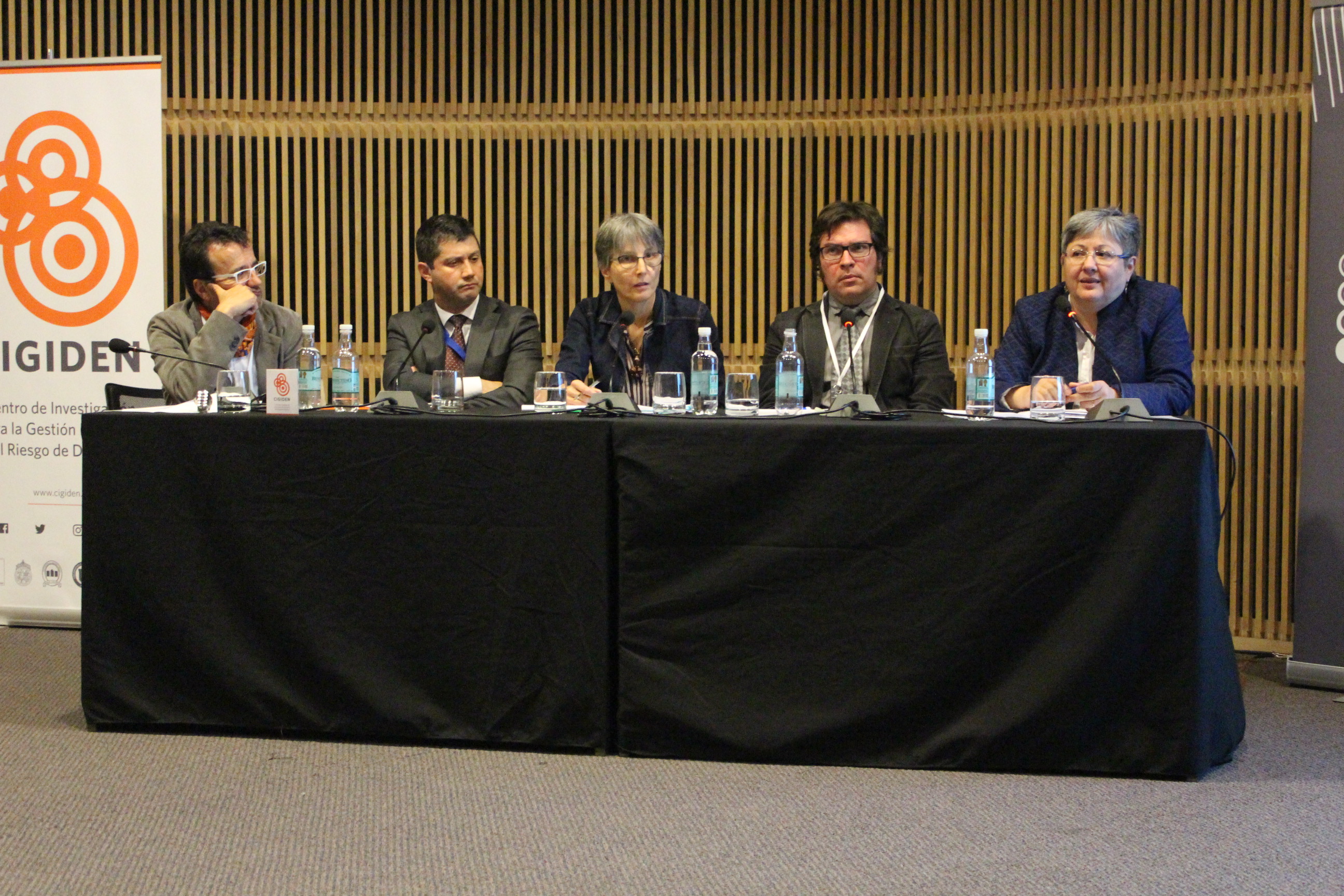 Durante las mesas se abordaron la ciudadanía conectada en desastres y la gestión de riesgos a nivel regional, por lo que se contó con la participación de Isabelle Braud, de IRSTEA, Jorge Gironás, de CIGIDEN-UC, Allan Lavell, FLACSO, Roberto Moris, Cigiden UC, Andrea Pino, de Cigiden USM, y Víctor Orellana, Subdirector Nacional de la Onemi.