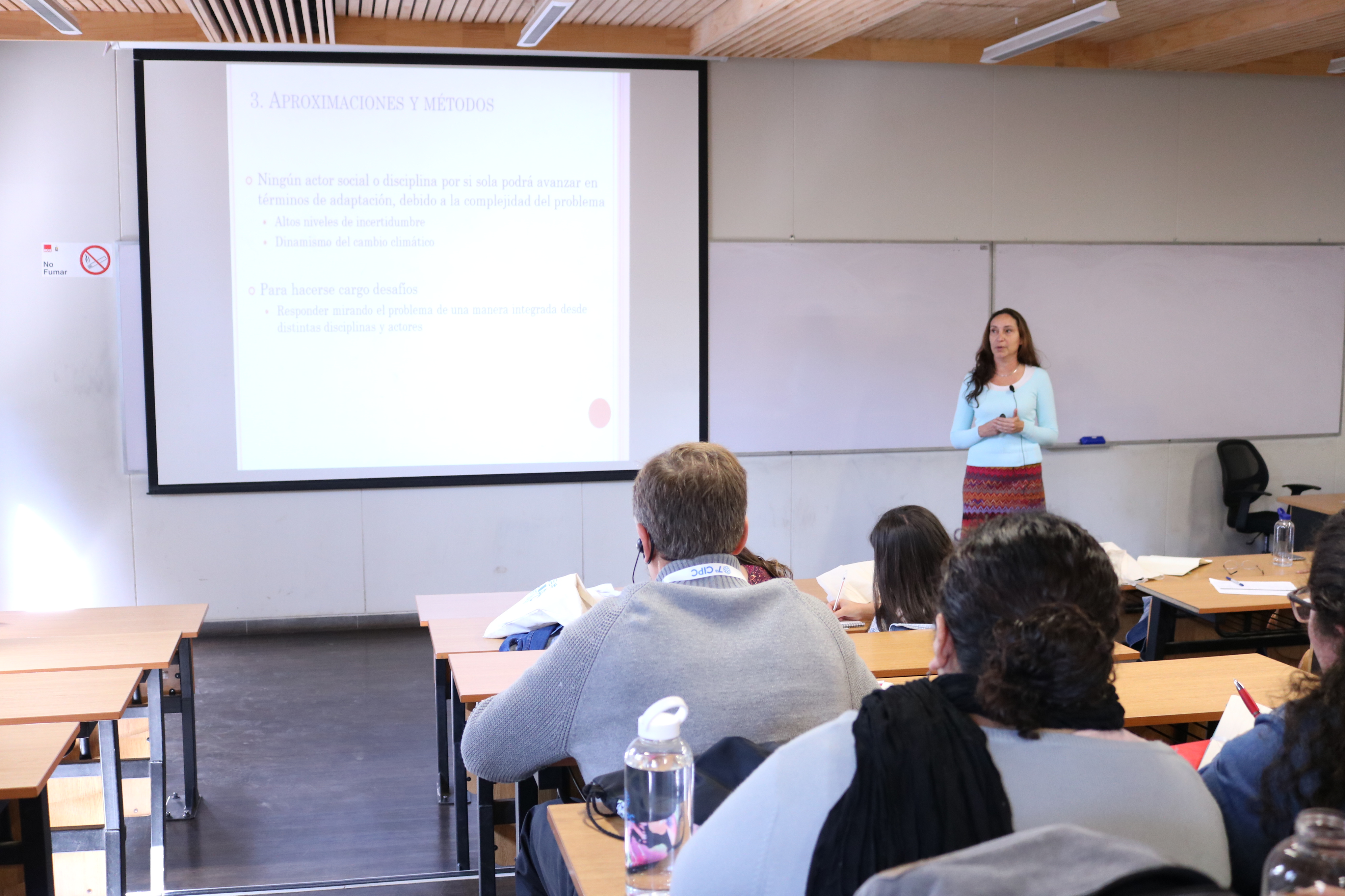 En la actividad se relacionó la investigación que se realiza desde las ciencias sociales para mitigar el cambio climático de forma cooperativa con el trabajo en comunidades. Anahí Urquiza, investigadora asociada del Centro de la línea Ciudades Resilientes y académica de la facultad de Ciencias Sociales de la Universidad de Chile, comentó la importancia que tiene vincular el trabajo de las ciencias sociales con el cambio climático.