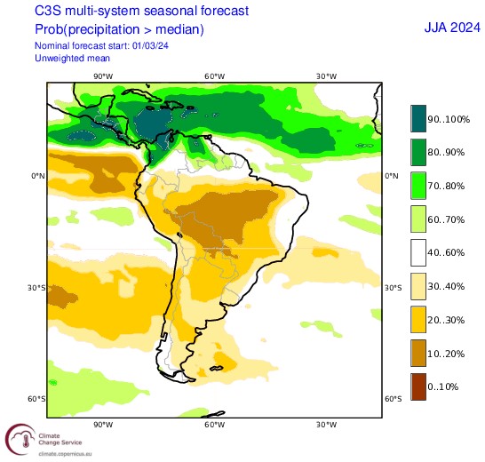 El invierno del año 2023 fue el más lluvioso de los últimos 15 años, superando los milímetros de agua caída de un año normal. No obstante, aunque este fenómeno aumentó la cifra de agua almacenada en el país, la situación de sequía se mantiene, razón por la que existe incertidumbre respecto a las proyecciones climáticas para este invierno. Pablo Sarricolea, académico del Departamento de Geografía de la Facultad de Arquitectura y Urbanismo de la Universidad de Chile e investigador del Centro de Ciencia del Clima y la Resiliencia (CR2), adelanta que, “en general, los modelos de pronóstico estacional (Copernicus, IRI Columnia, NOAA) convergen hacia un invierno más seco, es decir, precipitaciones entre junio, julio y agosto por debajo de lo normal”.