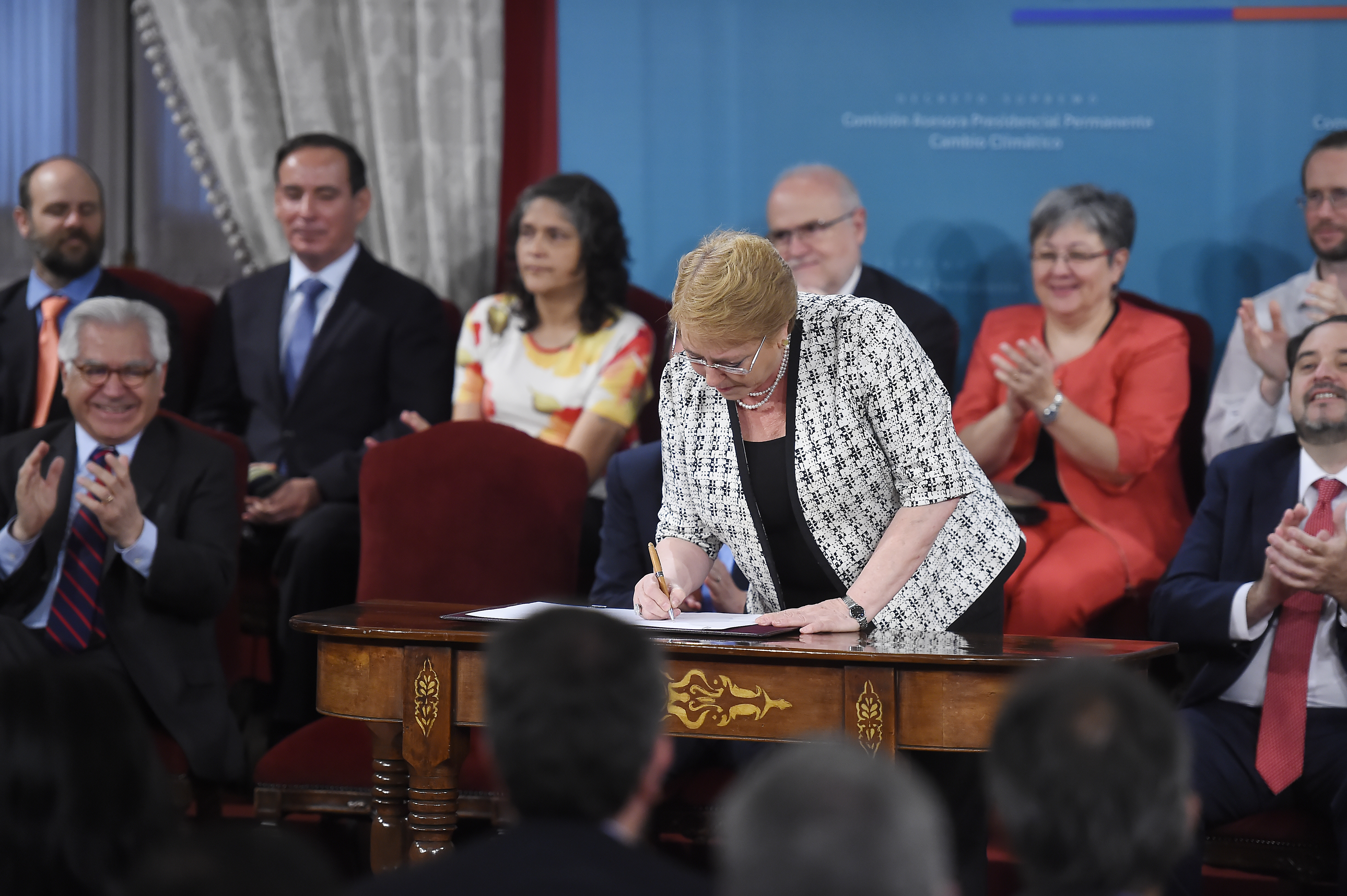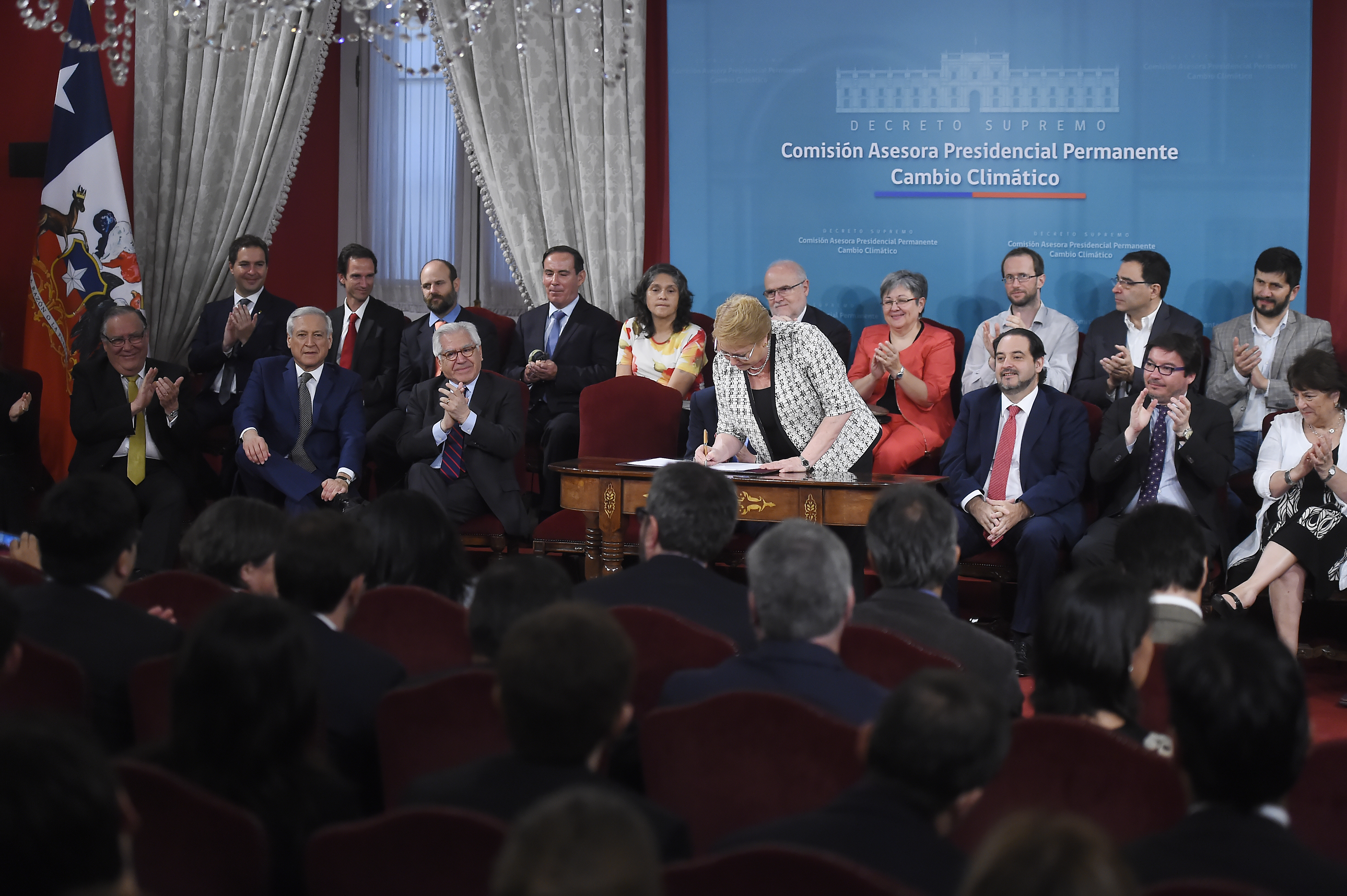 Esta mañana en el Palacio de La Moneda, la Presidenta de la República, Michelle Bachelet, firmó el decreto supremo que crea Comisión Asesora Presidencial Permanente de Cambio Climático.