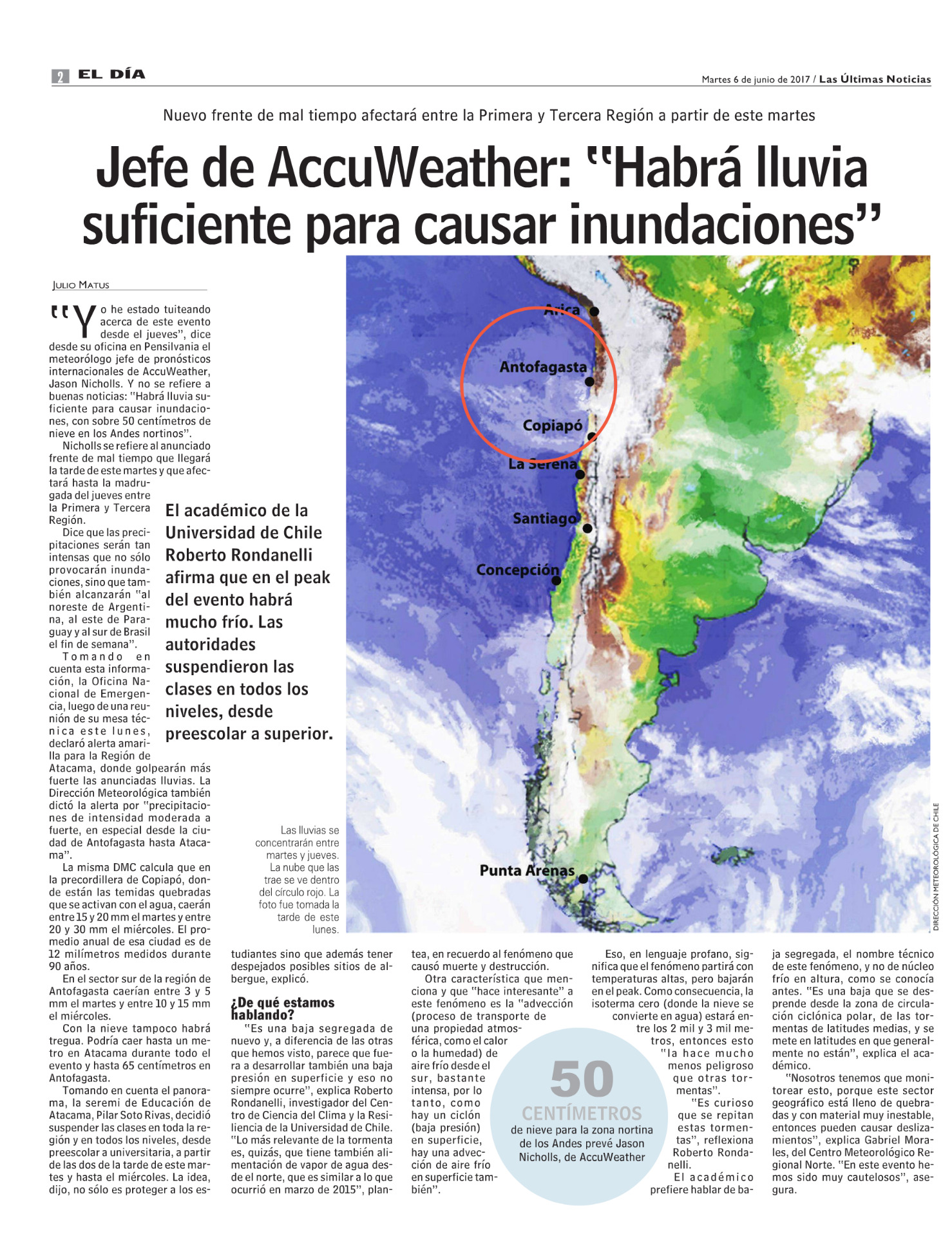 Jefe de AccuWeather: «Habrá lluvia suficiente para causar inundaciones» (Las Últimas Noticias)
