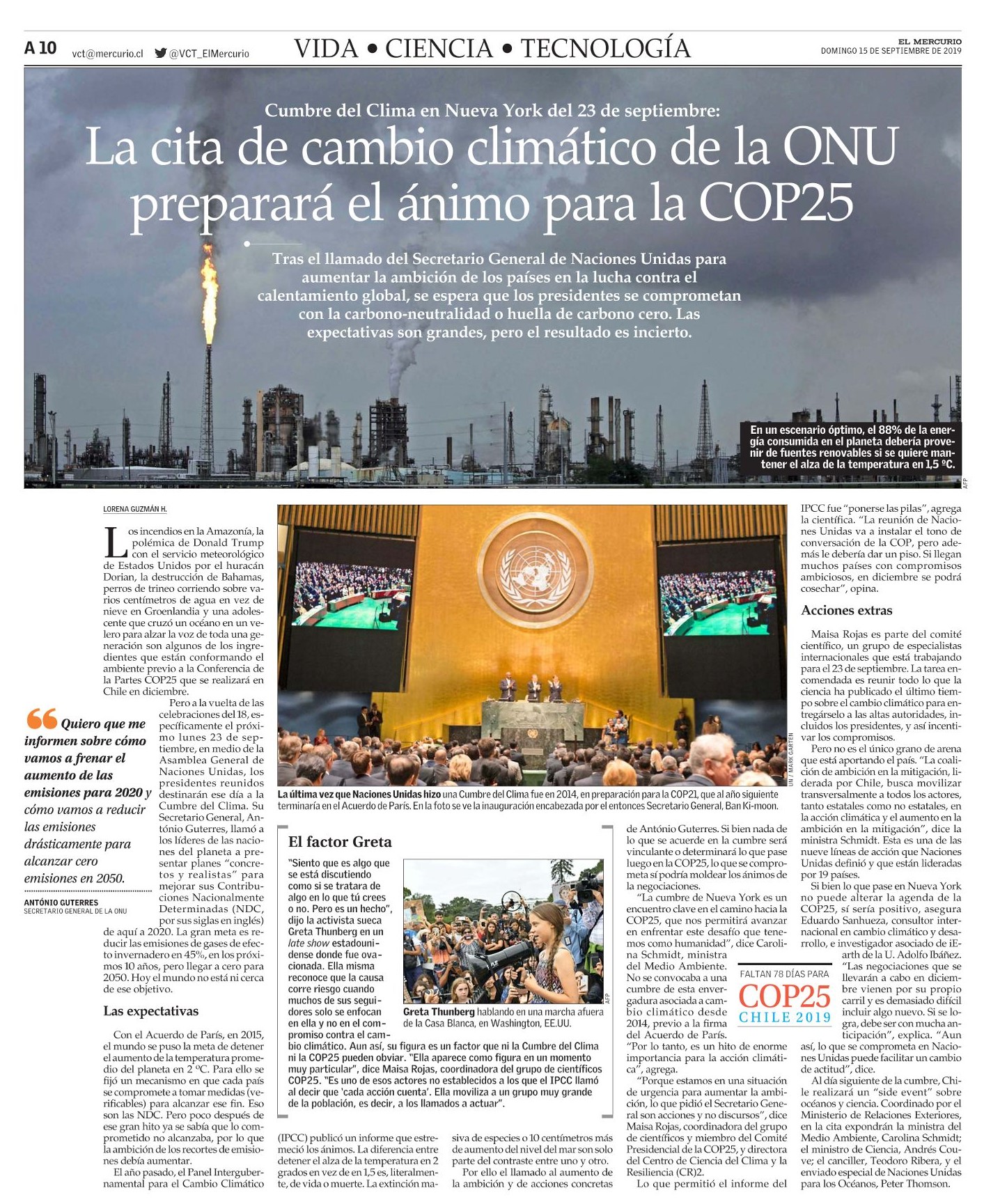 La cita de cambio climático de la ONU preparará el ánimo para la COP25 (El Mercurio)