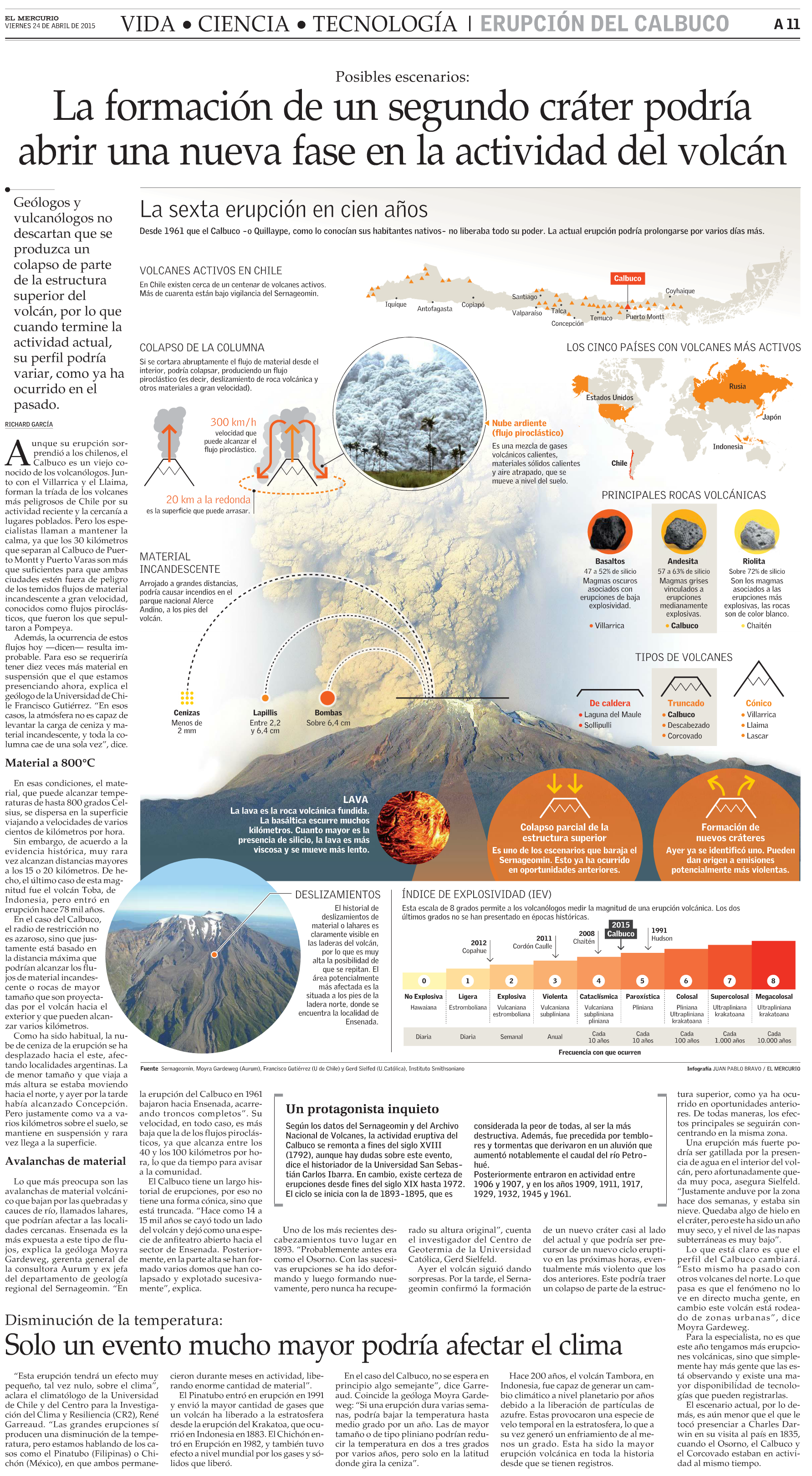 La formación de un segundo cráter podría abrir una nueva fase en la actividad del volcán (El Mercurio)