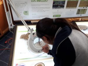 Isabella Aguilera Betti, bióloga y dendrocronóloga, viajó desde el Laboratorio de Dendrocronología y Estudios Ambientales de la Pontificia Universidad Católica de Chile, lugar donde trabaja actualmente, para visitar a los niños y niñas de la Escuela Básica Lo Cartagena, explicando de primera fuente la importancia de esta ciencia para la comunidad: “la exposición está muy bien diseñada para que puedan entender fácilmente la capacidad que tienen los árboles de registrar lo que ocurre en nuestro ambiente y también despertar su curiosidad y ganas de aprender, lo más probable es que en un futuro tengamos una o un científico de esta escuela”.