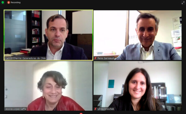 En la ocasión los invitados fueron René Garreaud, investigador principal CR2 y académico de la Universidad de Chile; Jessica López, presidenta ejecutiva de ANDESS AG.; y Ulrike Broschek, Subgerente de Sustentabilidad de Fundación Chile. Como moderador actuó Camilo Charme, director de Asuntos Regulatorios de Generadoras de Chile.