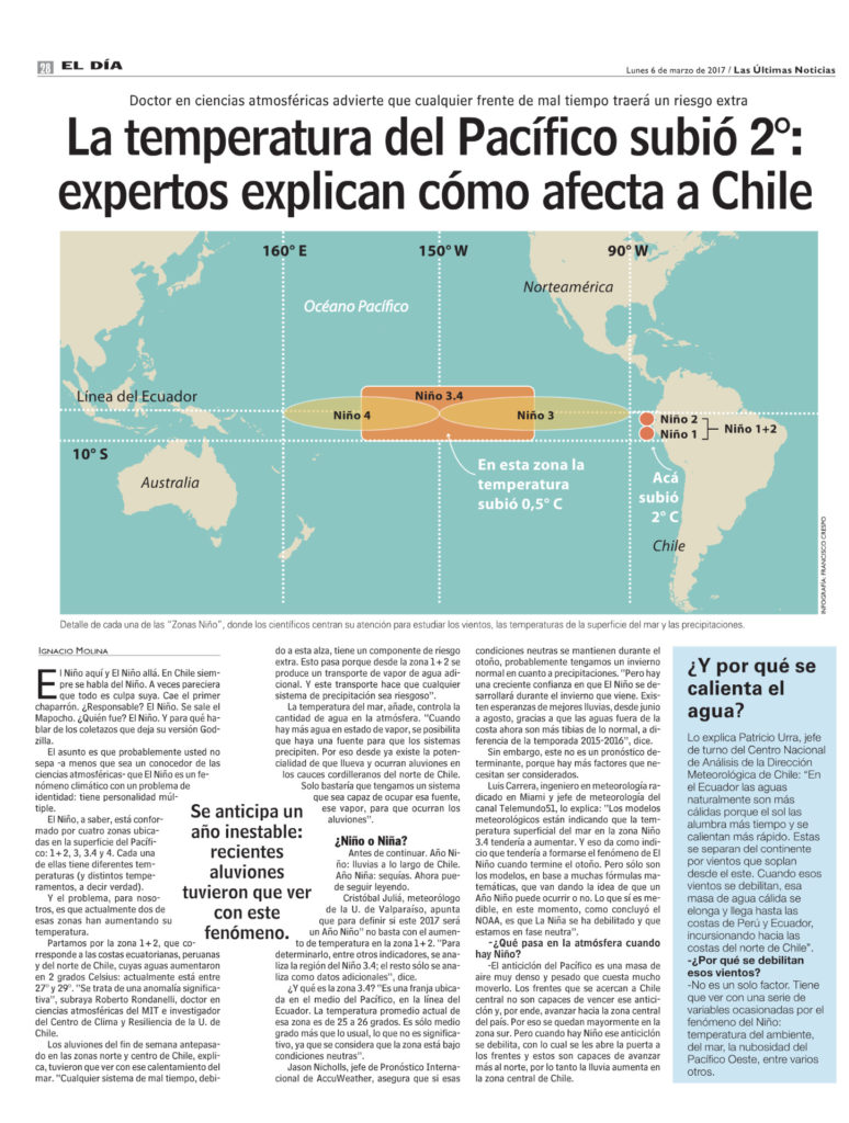 La temperatura del Pacífico subió 2°: expertos explican cómo afecta a Chile (Las Últimas Noticias)