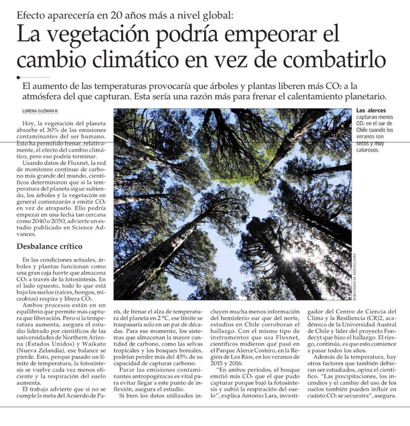 La vegetación podría empeorar el cambio climático en vez de combatirlo (El Mercurio)