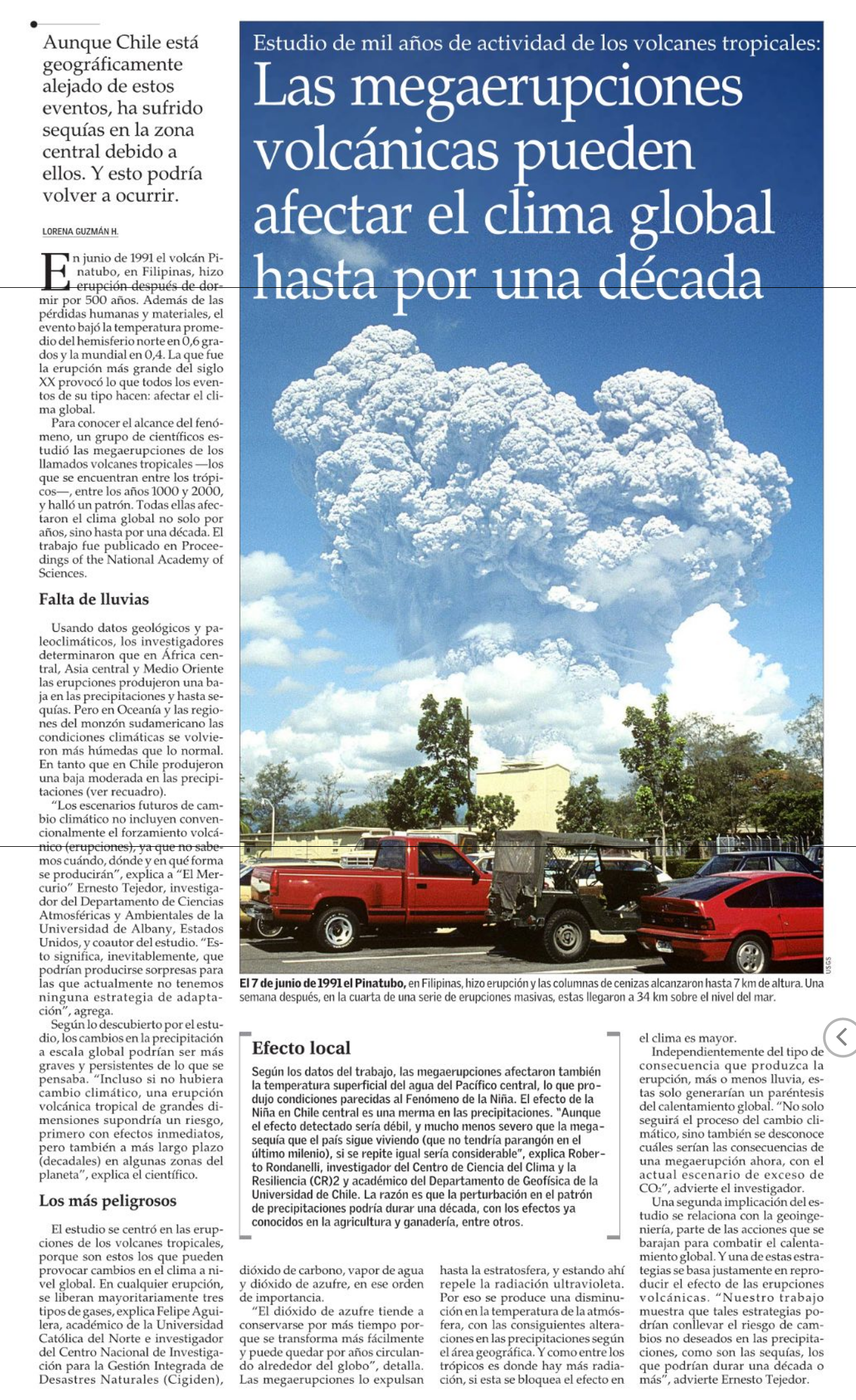 Las megaerupciones volcánicas pueden afectar el clima global hasta por una década (El Mercurio)