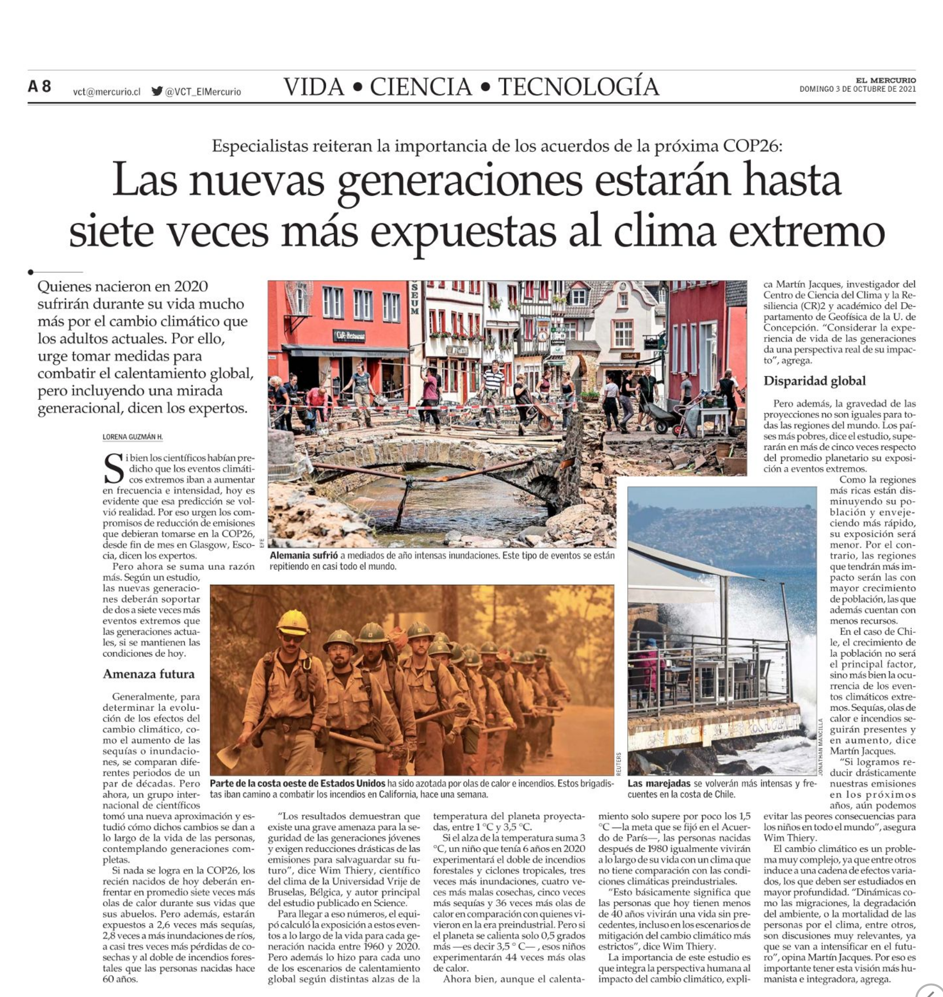 Las nuevas generaciones estarán hasta siete veces más expuestas al clima extremo (El Mercurio)