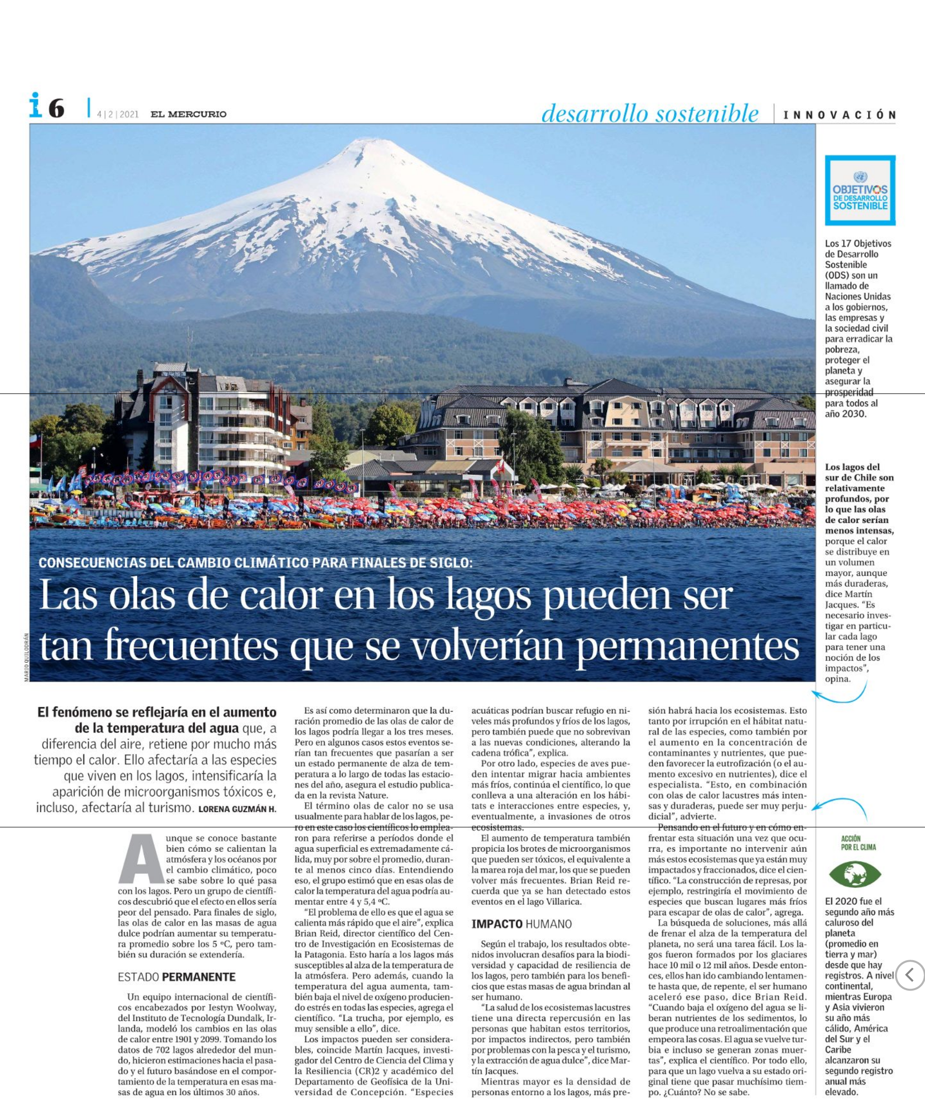 Las olas de calor en los lagos pueden ser tan frecuentes que se volverán permanentes (El Mercurio)