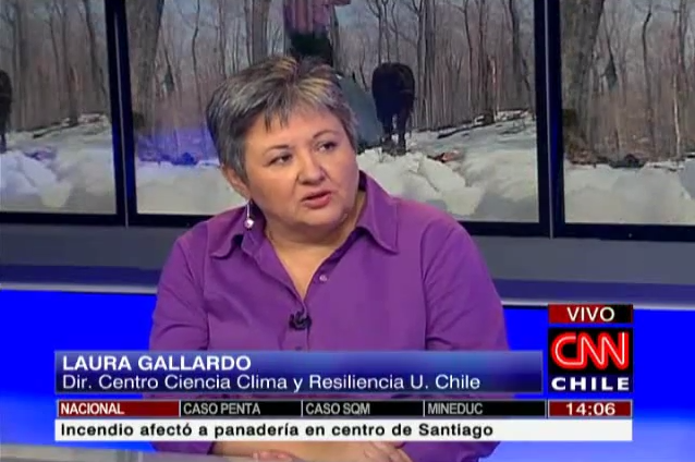 (CNN Chile, 23 de marzo) Laura Gallardo, directora del (CR)2, fue invitada a los estudios de CNN Chile para conversar en extenso sobre de las proyecciones del cambio climático en nuestro país.