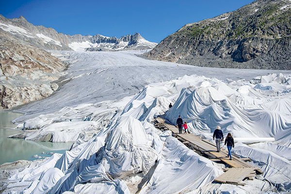 El embajador de Suiza en Chile, Arno Wicki, explica que la primera cobertura geotextil – hecha de fibra de poliéster y de polipropileno- se realizó en el glaciar de Gruschenfirn en 2004 y que desde entonces se ha transformado en una práctica recurrente en Los Alpes. Hoy se utilizan geotectiles en nueve puntos clave del país para proteger las principales atracciones turísticas de la región, además del esquí, «se destinan a proteger áreas bien delimitadas y se basan principalmente en criterios económicos», señala el embajador.