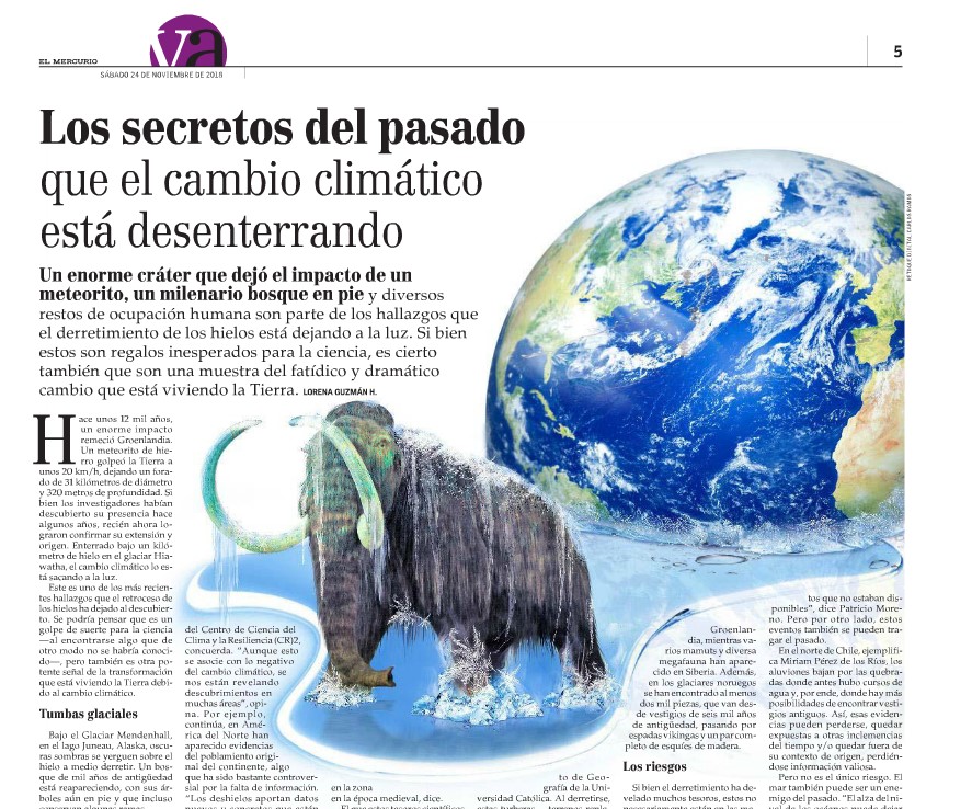 Eugenia Gayó, ecóloga del Centro de Investigaciones del Hombre en el Desierto (CIHDE) de la Universidad de Tarapacá, y del Centro de Ciencia del Clima y la Resiliencia (CR)2, concuerda. «Aunque esto se asocie con lo negativo del cambio climático, se nos están revelando descubrimientos en muchas áreas», opina. Por ejemplo, continúa, en América del Norte han aparecido evidencias del poblamiento original del continente, algo que ha sido bastante controversial por la falta de información. «Los deshielos aportan datos nuevos y concretos que están ayudando a entender cómo fue ese proceso», explica.