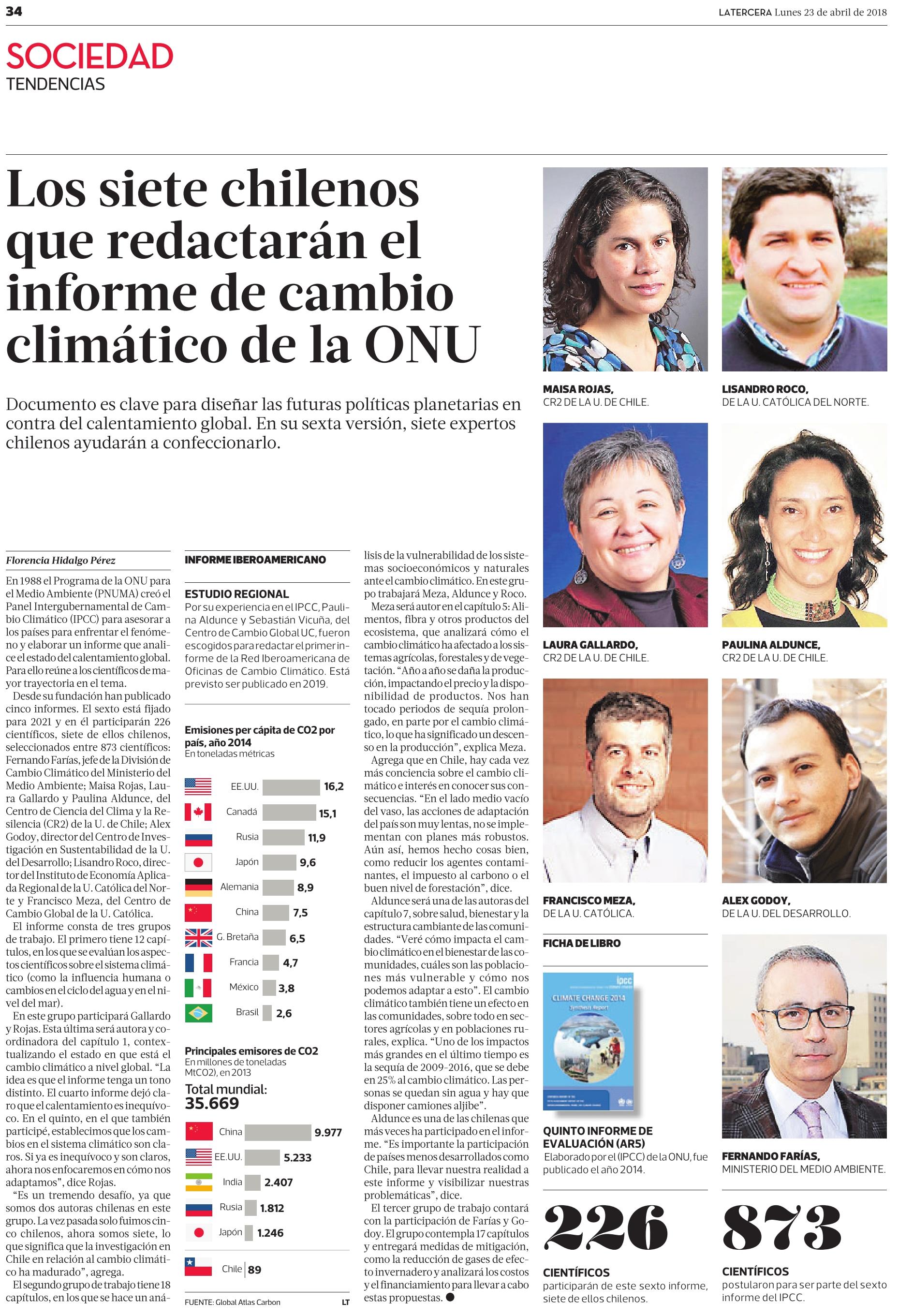 Desde su fundación han publicado cinco informes. El sexto está fijado para 2021 y en él participarán 226 científicos, siete de ellos chilenos, seleccionados entre 873 científicos: Fernando Farías, jefe de la División de Cambio Climático del Ministerio del Medio Ambiente; Maisa Rojas, Laura Gallardo y Paulina Aldunce, del Centro de Ciencia del Clima y la Resilencia (CR2) de la U. de Chile; Alex Godoy, director del Centro de Investigación en Sustentabilidad de la U. del Desarrollo; Lisandro Roco, director del Instituto de Economía Aplicada Regional de la U. Católica del Norte y Francisco Meza, del Centro de Cambio Global de la U. Católica.