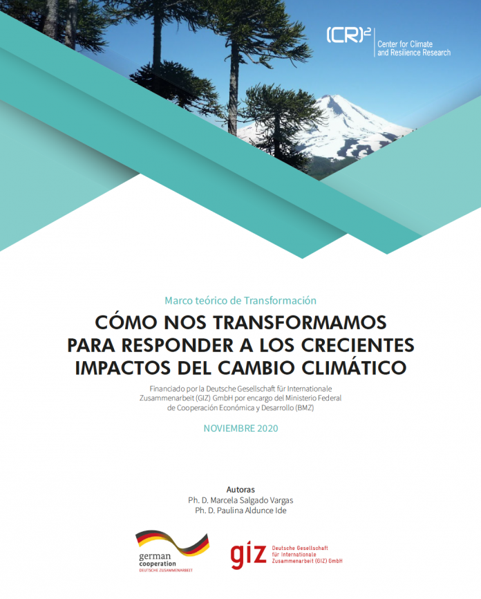 El documento fue elaborado por Marcela Salgado y Paulina Aldunce, investigadora del (CR)2, y financiado por la Deutsche Gesellschaft für Internationale Zusammenarbeit (GIZ) GmbH por encargo del Ministerio Federal de Cooperación Económica y Desarrollo (BMZ).