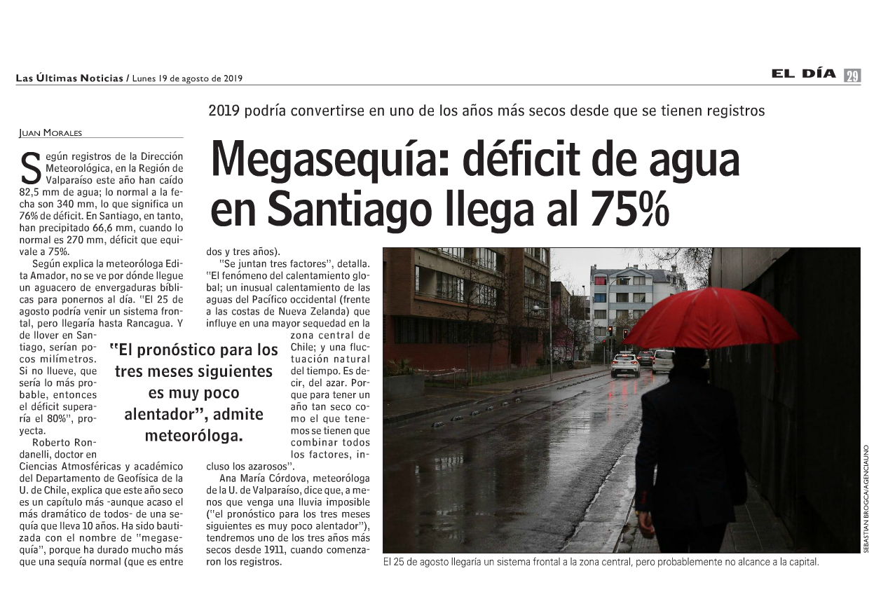 Megasequía: déficit de agua en Santiago llega al 75% (Las Últimas Noticias)