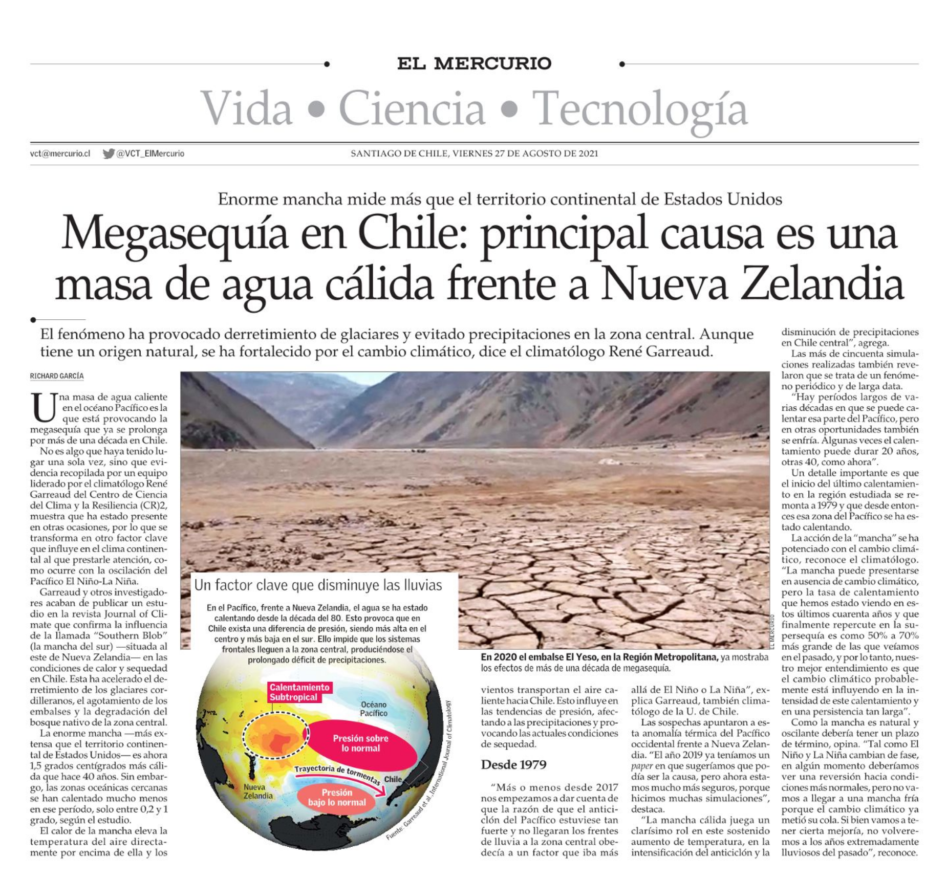 Megasequía en Chile: principal causa es una masa de agua cálida frente a Nueva Zelandia (El Mercurio)