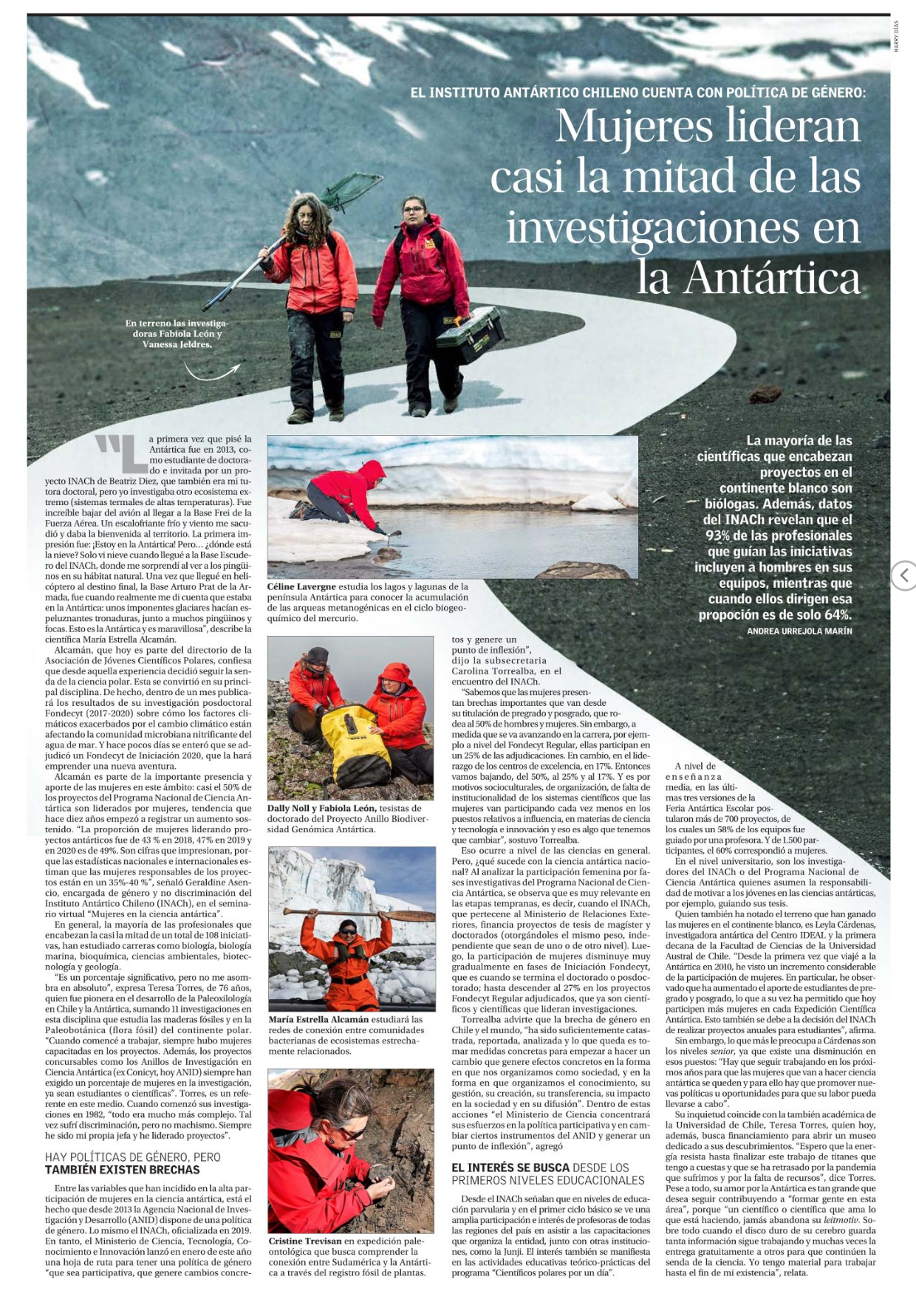 Mujeres lideran casi la mitad de las investigaciones en Antártica (El Mercurio)