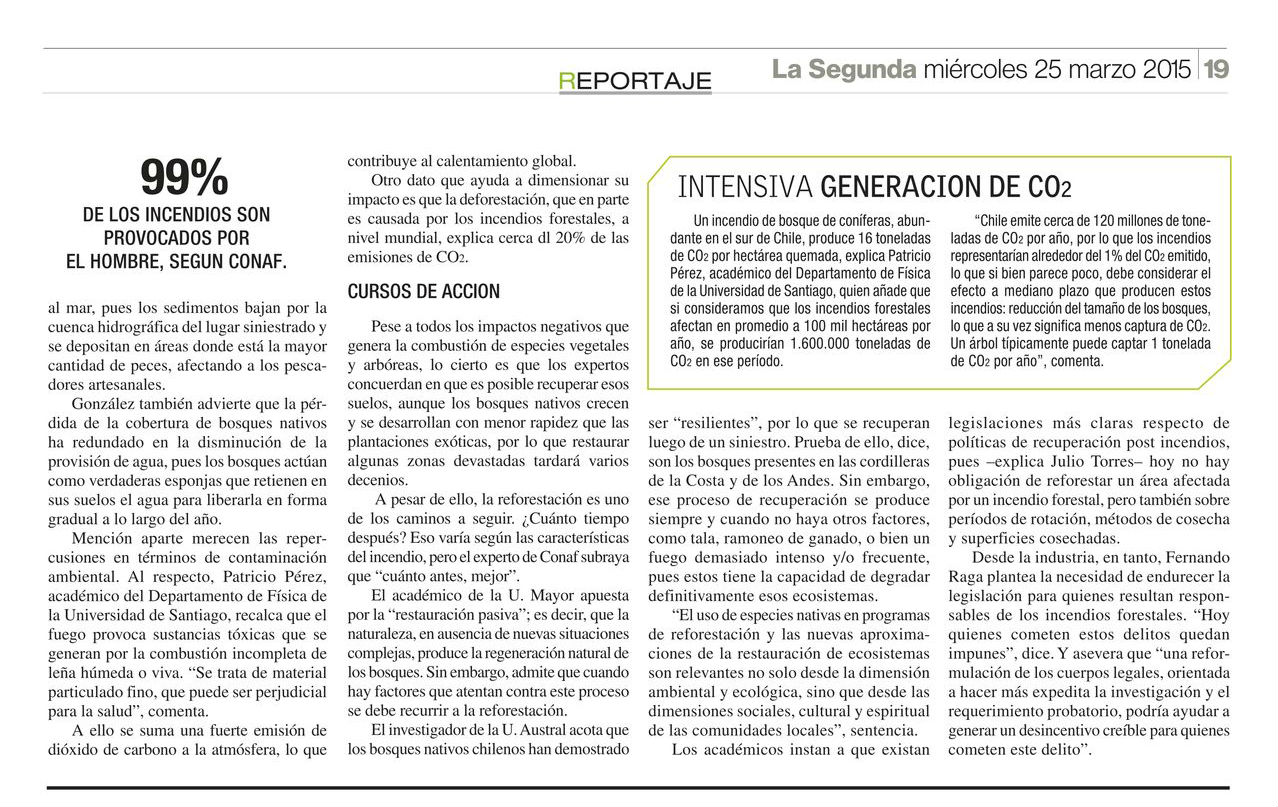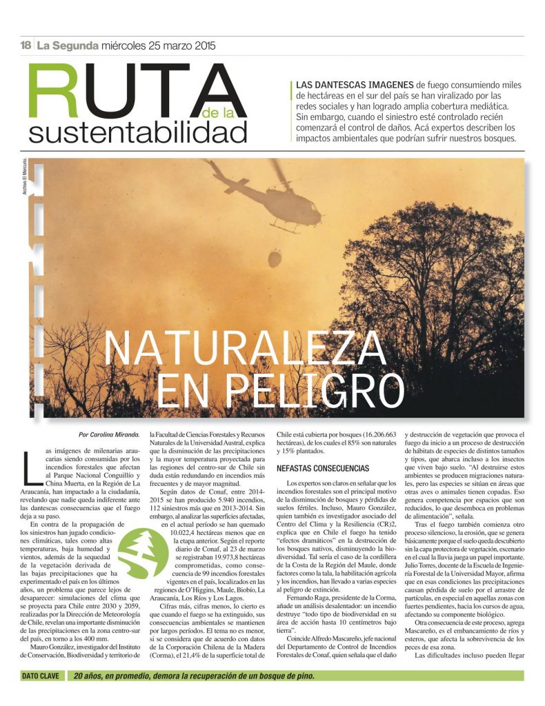 (Ruta de la Sustentabilidad, La Segunda, 25 de marzo) Las dantescas imágenes de fuego consumiendo miles de hectáreas en el sur del país se han viralizado por las redes sociales y han logrado amplia cobertura mediática. Sin embargo, cuando el siniestro esté controlado recién comenzará el control de daños. Acá expertos describen los impactos ambientales que podrían sufrir nuestros bosques.