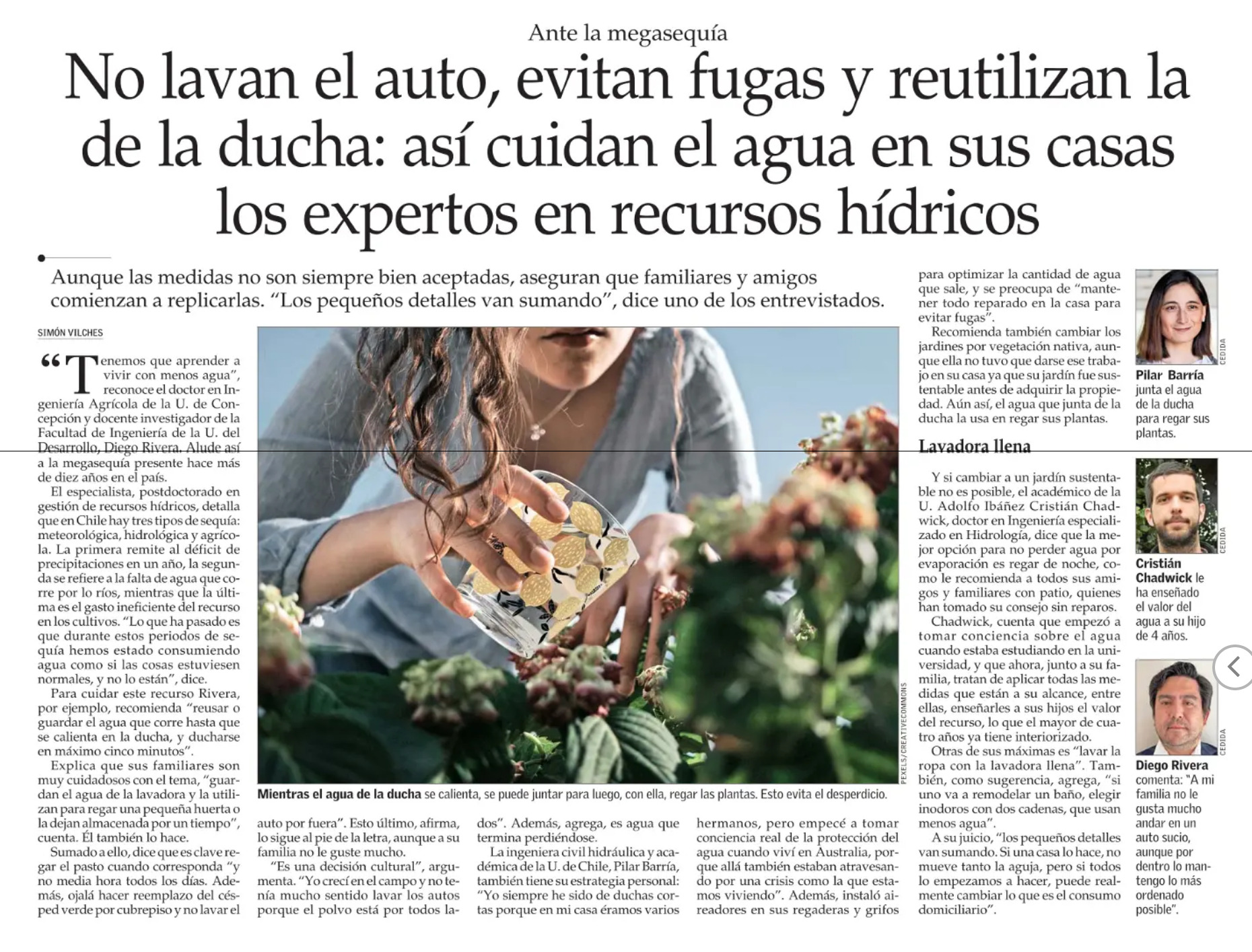 «Tenemos que aprender a vivir con menos agua», reconoce el Ingeniero Agrícola de la U. de Concepción y docente investigador de la Facultad de Ingeniería de la U. del Desarrollo, Diego Rivera. Alude así la megasequía presente hace más de diez años en el país.