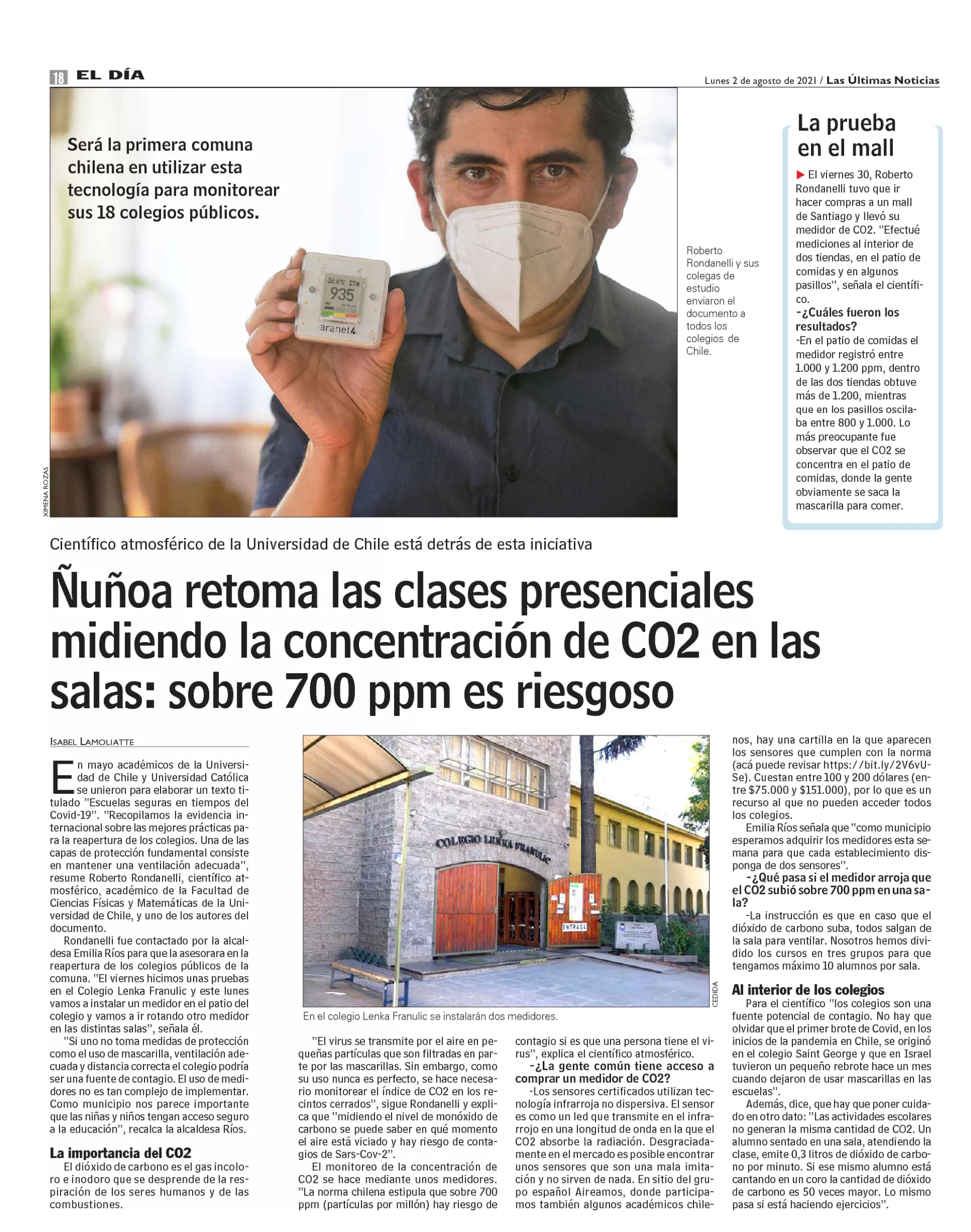 En mayo académicos de la Universidad de Chile y Universidad Católica se unieron para elaborar un texto titulado «Escuelas seguras en tiempos del Covid-19». «Recopilamos la evidencia internacional sobre las mejores prácticas para la reapertura de los colegios. Una de las capas de protección fundamental consiste en mantener una ventilación adecuada», resume Roberto Rondanelli, científico atmosférico, académico de la Facultad de Ciencias Físicas y Matemáticas de la Universidad de Chile, y uno de los autores del documento.