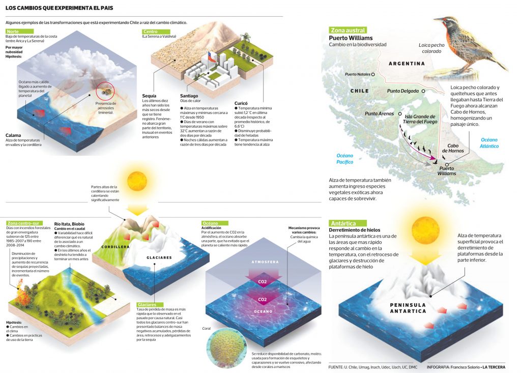 (La Tercera, 22 de abril de 2015) Pese a que expertos estiman que aún faltan mediciones para certificar su presencia, el país ya experimenta drásticos cambios atribuibles al fenómeno global.