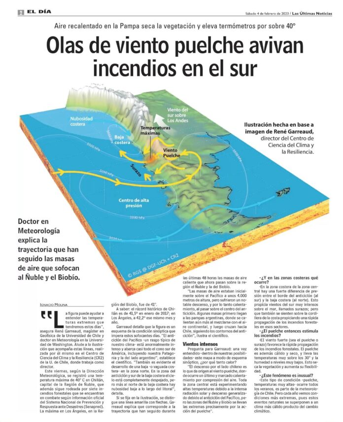 Agua y ExtremosIncendios forestales Olas de viento puelche avivan incendios en el sur (Las Últimas Noticias) 4 de marzo de 2023 1344 Doctor en Meteorología explica la trayectoria que han seguido las masas de aire que sofocan al Ñuble y el Biobío. Leer en Las Últimas Noticias.