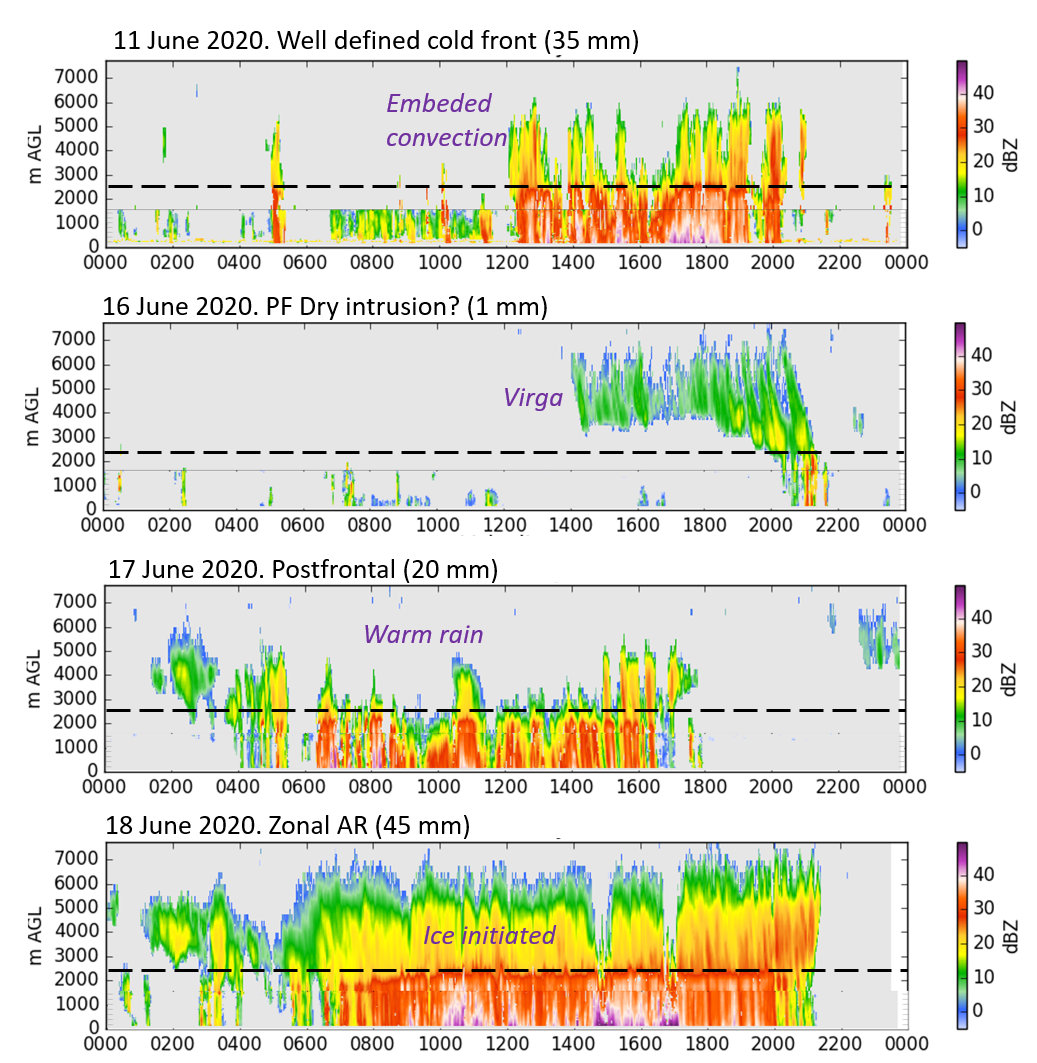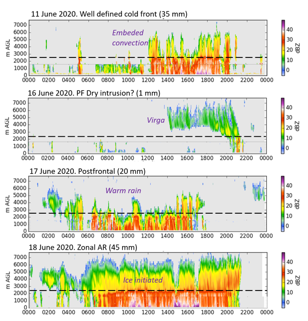 De manera similar, pero considerando la escala local, ¿la proveniencia de los hidrometeoros (II/WR) produce un sesgo sustancial en la distribución de la intensidad de la lluvia en la zona costera y en el gradiente orográfico de precipitación?