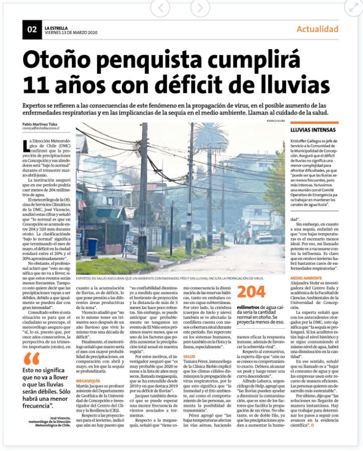 La Dirección Meteorológica de Chile (DMC) confirmó que la proyección de precipitaciones en Concepción y sus alrededores será «bajo lo normal» durante el trimestre marzo-abril-junio.