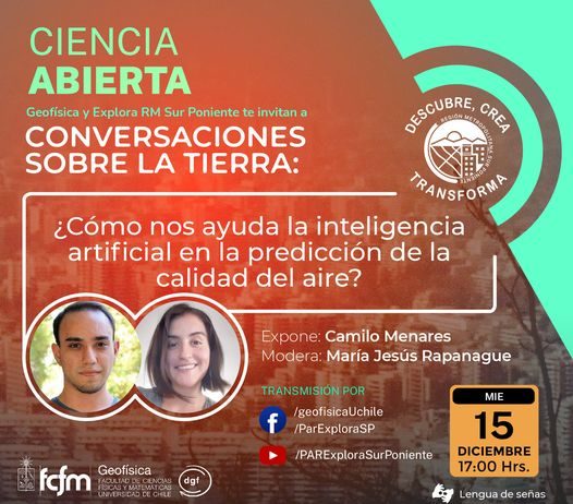 ¿Sabías que la inteligencia artificial también nos puede ayudar a mejorar nuestra calidad de vida? Descúbrelo en el próximo "Conversaciones sobre la Tierra" de Biblioteca Montessus de Ballore y Explora Sur Poniente, junto al integrante del equipo de Datos y Cómputos del (CR)2, Camilo Menares.