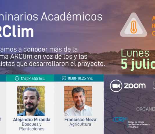El Centro de Ciencia del Clima y la Resiliencia (CR)2, junto al Centro de Cambio Global UC, tienen el agrado de invitar a la cuarta sesión del Ciclo de Seminarios Académicos Arclim, en donde pondrán conocer más sobre esta plataforma en la voz de los y las especialistas que...