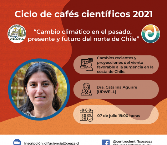 Este miércoles 7 de julio, a las 19 horas, se desarrollará un nuevo Café Científico organizado en conjunto por el Centro Científico CEAZA y el Núcleo Milenio UPWELL. En esta oportunidad, la exposición se titulará “Cambios recientes y proyecciones del viento favorable a la surgencia en la costa de...