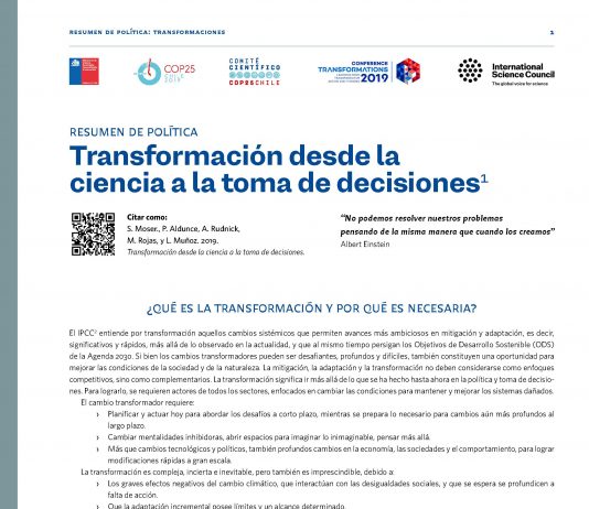 La transformación es una de las temáticas que está emergiendo en el ámbito del cambio climático en Chile. Uno de los aspectos más relevantes es promover la alfabetización del enfoque transformacional, con especial énfasis en sus modos de implementación, ya que se reconoce cierta desinformación y confusión respecto de...