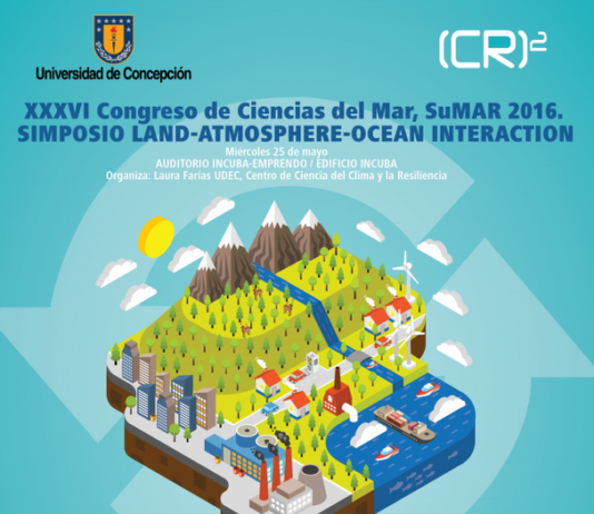 Dentro de las actividades del XXXVI Congreso de Ciencias del Mar SUMAR 2016, el Centro de Ciencia del Clima y la Resiliencia(CR)2 invita a participar el miércoles 25 de mayo desde las 10:30 hrs del simposio dedicado a la interacción tierra, atmósfera y océano en el edificio Incuba UdeC...