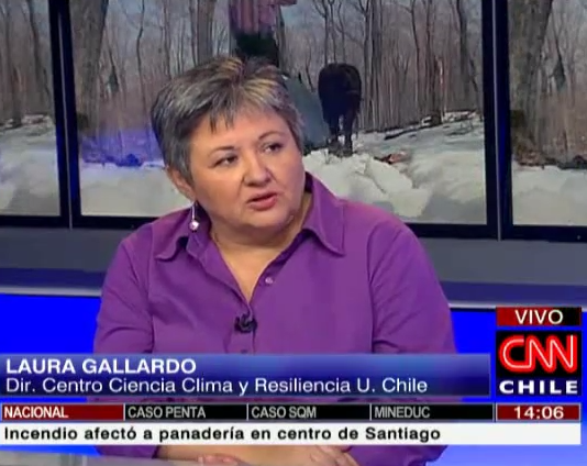 (CNN Chile, 23 de marzo) Laura Gallardo, directora del (CR)2, fue invitada a los estudios de CNN Chile para conversar en extenso sobre de las proyecciones del cambio climático en nuestro país.