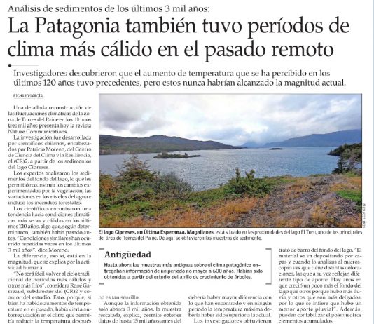 Estudio publicado en Revista Nature Communications, permitió reconstruir las fluctuaciones climáticas de la zona de Lago Cipreses en los últimos 3.000 años, un antecedente fundamental para poner los cambios actuales en una perspectiva de largo plazo.