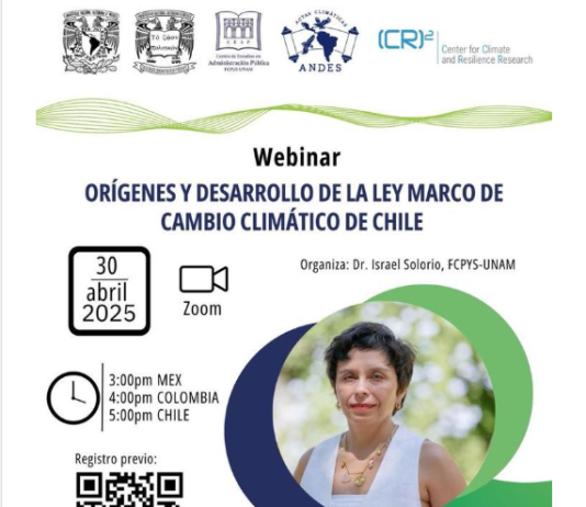 El miércoles 30 de abril de 2025 a las 17:00 horas de Chile, la Dra. Pilar Moraga Sariego (directora del Centro de Derecho Ambiental y del Centro de Ciencia del Clima y la Resiliencia CR2) participará como expositora en el webinar «Orígenes y Desarrollo de la hashtag#LeyMarcoDeCambioClimático de Chile»,...