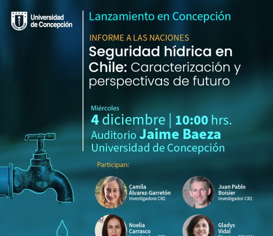 El próximo 4 de diciembre a las 10:00 am, se realizará el lanzamiento en Concepción del Informe a las Naciones Seguridad hídrica en Chile: Caracterización y perspectivas de futuro.